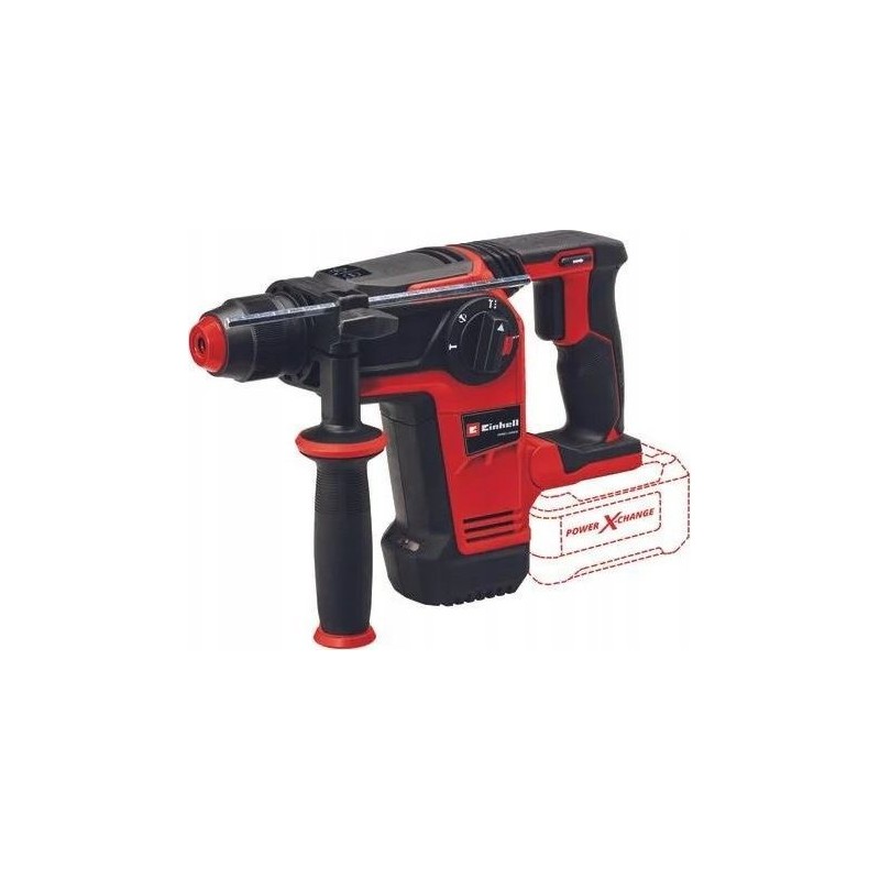 Einhell TP-HD 26/18 Li BL Solo Schlagbohrhammer Der professionelle Akku-Schlagbohrhammer Einhell TP-HD 18/26 Li BL-Solo ist ein wirklich vielseitiges Gerät. Er vereint vier Funktionen in einem Gerät: Bohren, Schlagbohren und Meißeln mit und ohne Aufsatz. Diese Funktionen lassen sich über einen zentralen Positionsschalter einstellen. Der multifunktionale Schlagbohrhammer TP-HD wird von einem leistungsstarken Einhell PurePOWER-Bürstenlosmotor angetrieben. Dieser Bürstenlosmotor sorgt für mehr Leistung und eine längere Laufzeit als herkömmliche Motoren mit Kohlebürsten. Der Akku-Bohrhammer gehört zur Einhell Power X-Change-Familie, in der alle Akkus, Werkzeuge und Ladegeräte beliebig miteinander kombiniert werden können. Der pneumatische Schlagmechanismus arbeitet mit einer Frequenz von bis zu 5500 Schlägen pro Minute und einer Schlagkraft von 2,6 J.