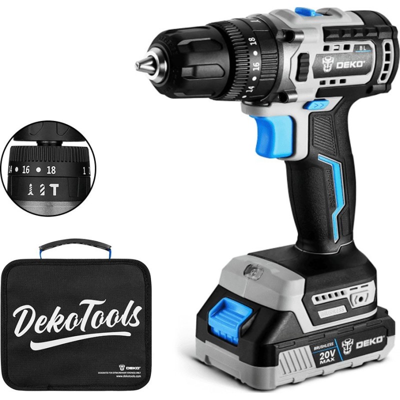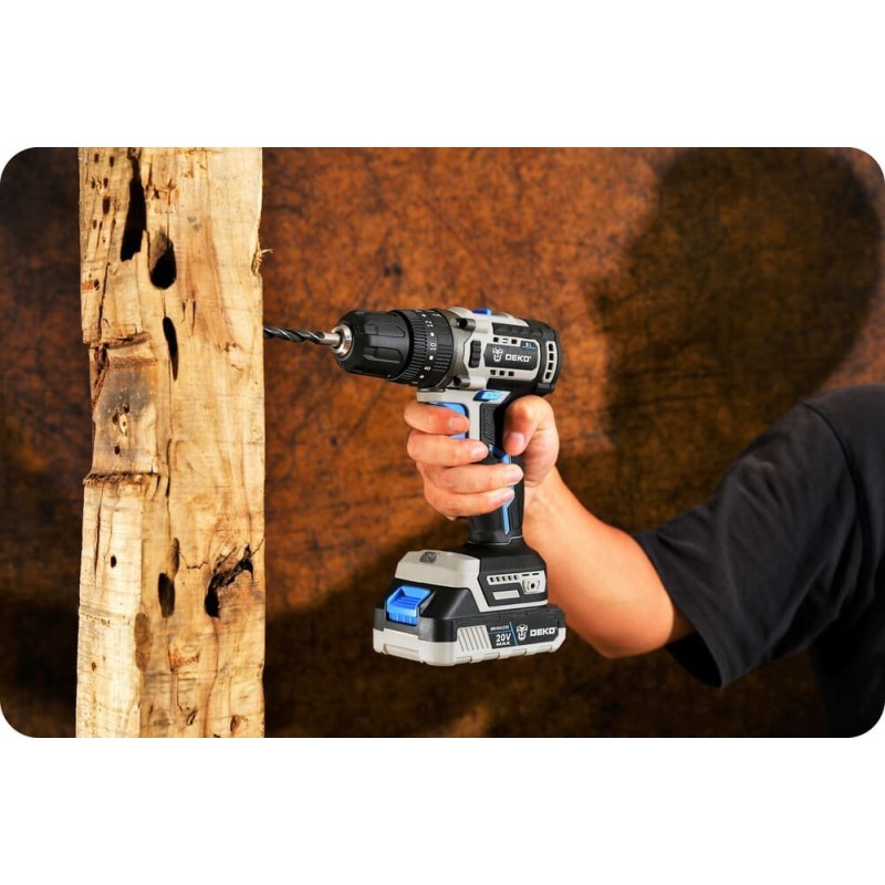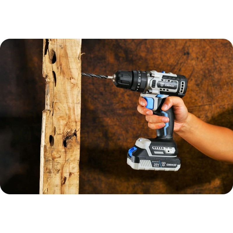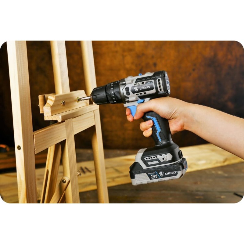 Bürstenloser MotorDer Bohr- und Schraubendreher DEKO DKBL20ID01-B10 moderner bürstenloser Motor, dessen Lebensdauer dreimal so lang ist wie die eines herkömmlichen Bürstenmotors. |