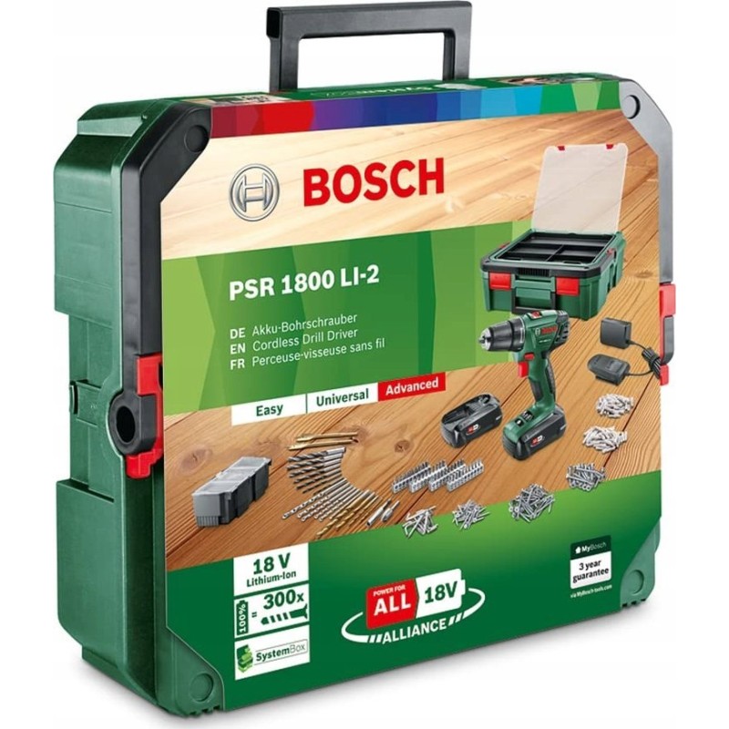 Akku-Bohrschrauber-Set Bosch PSR 1800 Li-2 (2 Akkus, 18 V, 241-teiliges Zubehörset, in Systembox)