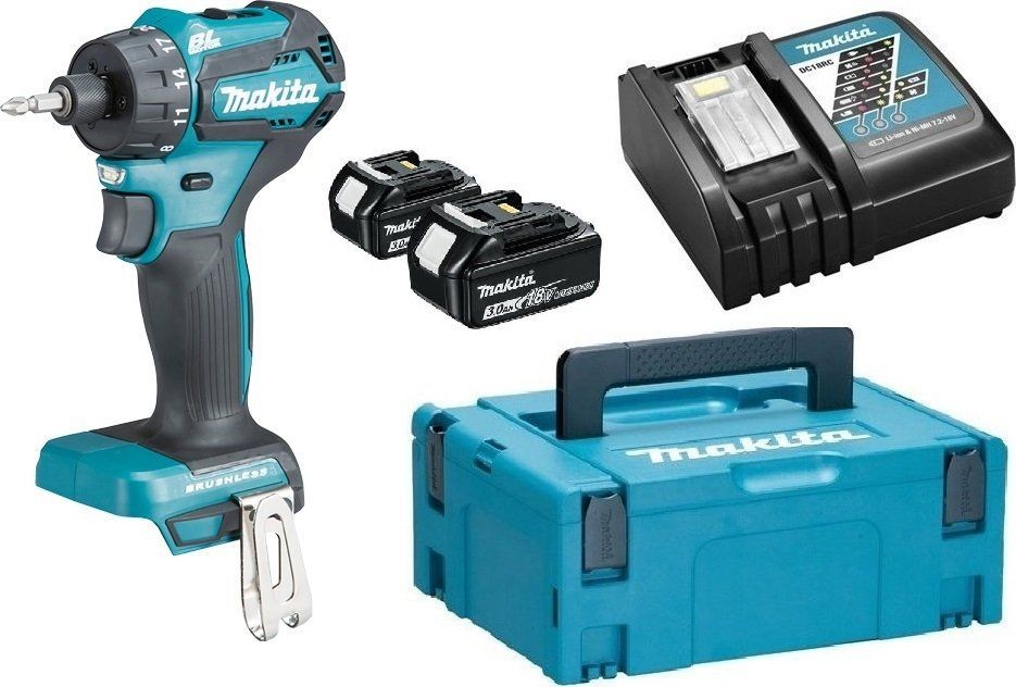 - Lieferung im MAKPAC-Systemkoffer mit 2 Akkus BL1830B (18 V / 3,0 Ah) und Ladegerät DC18RC