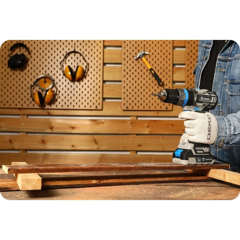Der Bohrschrauber DEKO DKBL20ID02 ist ein äußerst nützliches Gerät bei Renovierungsarbeiten im Haushalt sowie bei der Arbeit in der Werkstatt. Mit seiner Hilfe lassen sich Schrauben unterschiedlicher Größe sehr schnell und effizient eindrehen. Sie eignet sich hervorragend zum Zusammen- und Auseinanderbauen verschiedener Möbelstücke, zum Eindrehen von Schrauben in Holz oder zum Montieren von abgehängten Decken. Der Schlagbohrmodus ist beim Bohren in verschiedenen Wandarten nützlich.