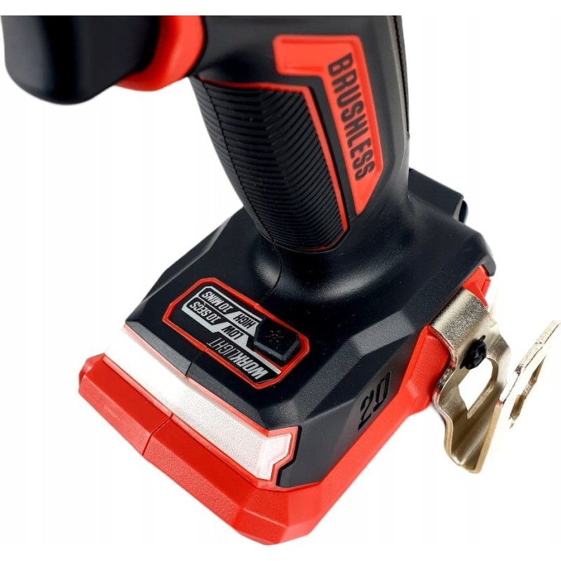 Der Schrauber ist mit einem bürstenlosen Motor ausgestattet, was die Arbeitseffizienz deutlich erhöht und den Energieverbrauch senkt. Dadurch arbeitet das Werkzeug länger und ist zuverlässiger, was bei intensiver Nutzung äußerst wichtig ist.