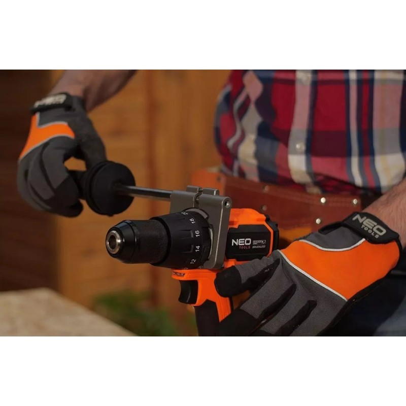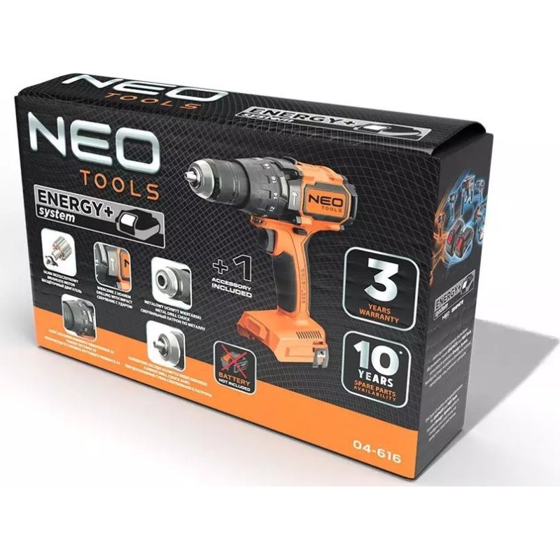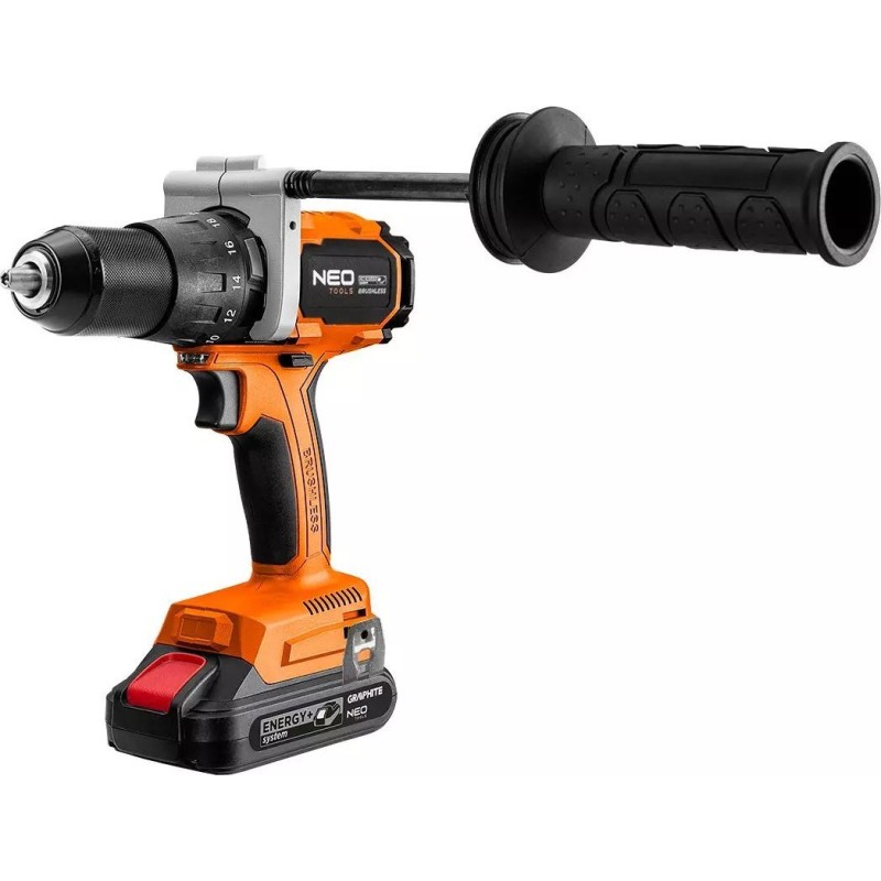 Das Gerät gehört zum Energy+-System, wodurch die Akkus zwischen den Elektrowerkzeugen von Neo Tools und Graphite austauschbar sind. Es ist kompatibel mit 18-V-Lithium-Ionen-Akkus mit einer Kapazität von 2 Ah und 4 Ah. Mit dem 2-Ah-Akku beträgt die Betriebszeit etwa 31 Minuten, während der empfohlene 4-Ah-Akku eine längere Nutzungsdauer bietet. Der selbstspannende 13-mm-Bohrfutter ermöglicht eine schnelle und einfache Montage des Zubehörs, was die Vielseitigkeit des Geräts erhöht.