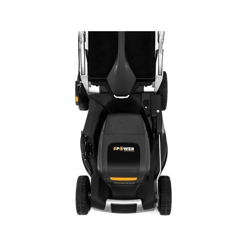 Für eine einfache und platzsparende Lagerung verfügt das Gerät über einen in drei Positionen klappbaren Lenker, und der gesamte Rasenmäher kann senkrecht aufgestellt werden. Das Set enthält keinen Akku und kein Ladegerät. Für den Betrieb des Rasenmähers sind 2 Akkus erforderlich.