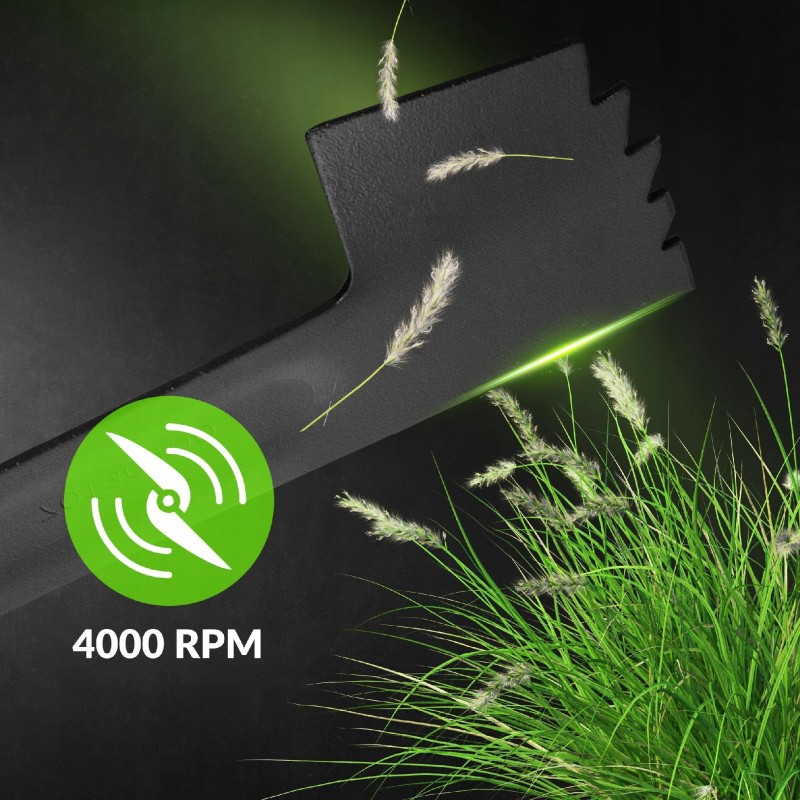 Der Akku mit einer Kapazität von 4 Ah ermöglicht eine Betriebszeit von bis zu 60 Minuten, wodurch eine Fläche von bis zu 800 m² gemäht werden kann. Dies ist die ideale Lösung für größere Gärten, in denen die Betriebszeit von entscheidender Bedeutung ist.