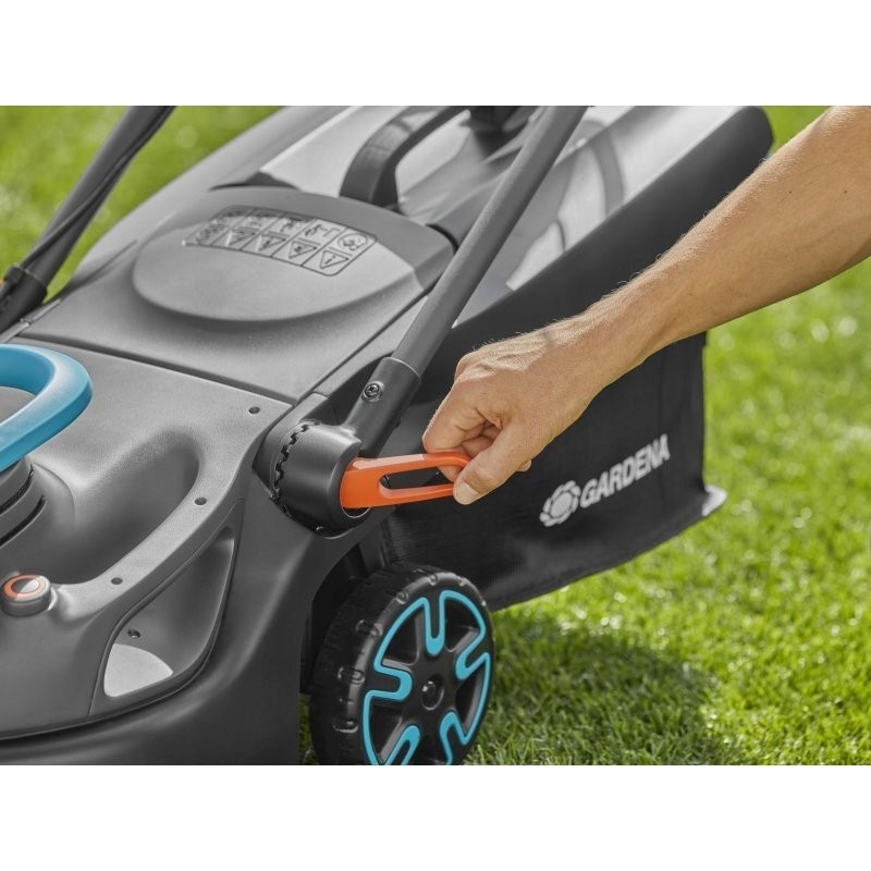 Mit dem einhändig bedienbaren QuickFit Plus-Knopf lässt sich die Schnitthöhe einfach, schnell und flexibel in einer von vier Positionen im Bereich von 35–65 mm einstellen.