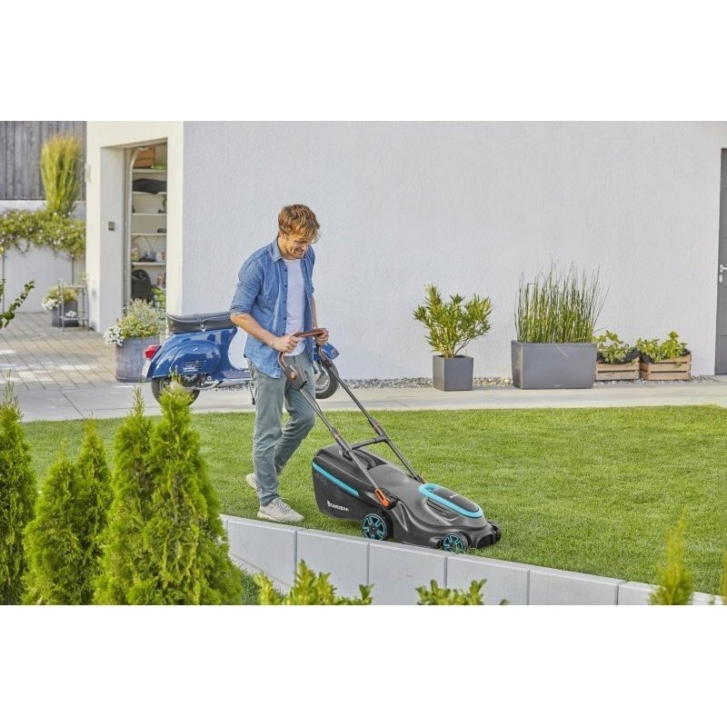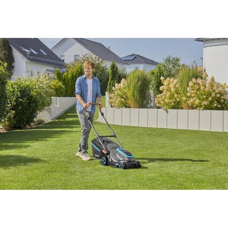 Der moderne Akku-Rasenmäher PowerMax 37/36V P4A – ohne Akku von GARDENA ist die Garantie für eine perfekte Rasenpflege der Premiumklasse. Dieses beeindruckende Modell besticht durch hohe Leistung, einfache Bedienung und hohe Effizienz. Der Rasenmäher ist mit allen Akkus der POWER FOR ALL ALLIANCE kompatibel. Je nach Akkutyp reicht die Laufzeit aus, um eine Rasenfläche von bis zu 500 m² zu mähen. Das doppelt gehärtete, präzisionsgeschliffene DuraEdge-Messer und die Schnittbreite von 37 cm sorgen für einen perfekten und gleichmäßigen Schnitt. Eine Füllstandsanzeige informiert darüber, wann der 45-Liter-Grasfangkorb geleert werden muss. Eine optimale Luftzirkulation und die ideale Position des Grasfangkorbs ermöglichen ein effizientes Auffangen des Schnittguts, wodurch der Korb vollständig gefüllt wird. Dies reduziert die Häufigkeit des Entleerens und spart Zeit. Der im PowerMax 37/36V verbaute bürstenlose Hochleistungsmotor versagt auch bei häufigem Einsatz nicht, behält seine hohe Leistung bei und gewährleistet eine lange Lebensdauer. Der ergonomische ErgoTec-Plus-Griff ermöglicht eine bequeme Bedienung des Mähers, unabhängig von der Handhaltung. Dadurch ist das Mähen mit dem Akku-Rasenmäher auch bei längerem Einsatz sehr komfortabel. Am Griff befindet sich ein LED-Display, das ständig den Ladezustand des Akkus anzeigt. Zudem aktiviert eine Taste am Griff den Eco-Modus, der Energie spart und die Laufzeit des POWER FOR ALL-Akkus verlängert. Vor dem Mähen lässt sich die Schnitthöhe ganz einfach mit einer Hand über die QuickFit Plus-Taste in der Mitte des Gehäuses einstellen. Die seitlichen Grasfangkämme erreichen alle Bereiche – selbst schwer zugängliche Stellen entlang von Mauern und Gehwegen – und sorgen so für perfekte Mähergebnisse. Nach dem Mähen können Sie die praktische Griffklappfunktion nutzen, um Platz bei der Aufbewahrung des Rasenmähers zu sparen. Der GARDENA Akku-Rasenmäher PowerMax 37/36V P4A – ohne Akku wird ohne Ladegerät und die beiden erforderlichen POWER FOR ALL-Akkus geliefert. Er kann mit jedem Akku der POWER FOR ALL ALLIANCE-Serie verwendet werden. POWER FOR ALL ALLIANCE ist eine der größten strategischen Allianzen führender Hersteller von Akku-Produkten. Akkus dieser Serie können in vielen verschiedenen Geräten für Haus und Garten verwendet werden. So sparen Sie Geld und behalten die volle Leistungsfähigkeit! Für höchste Leistung werden Akkus mit einer Kapazität von mindestens 4,0 Ah empfohlen. Möchten Sie lieber ein Produkt kaufen, bei dem Akku und Ladegerät im Set enthalten sind? Kein Problem – wählen Sie das einsatzbereite Set (Art.-Nr. 14638-20). GARDENA – Leidenschaft treibt uns an. EIN Akkusystem für alle Aufgaben im Garten.