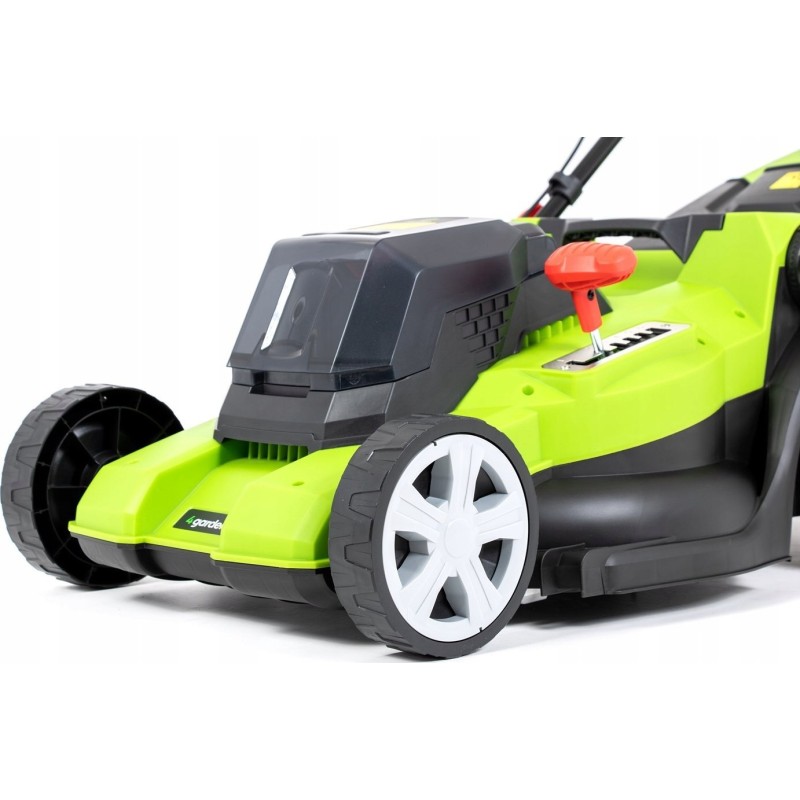 ➡️ Eine Arbeitsbreite von 44 cm und die Möglichkeit, die Schnitthöhe in sechs Stufen einzustellen, sorgen für effizientes Arbeiten.