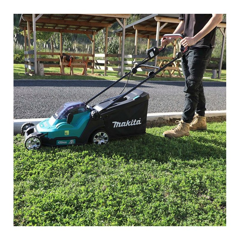 Mit einer Schnittbreite von 43 cm eignet sich der Makita DLM432CT2 perfekt für kleinere und mittelgroße Gärten und ermöglicht ein schnelles und präzises Mähen des Rasens.
