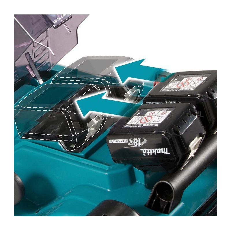 Der Rasenmäher wird von zwei 18-V-Li-Ion-Akkus mit einer Kapazität von 5 Ah angetrieben, was für einen langen Betriebsdauer und hohe Leistung sorgt. So können Nutzer effizientes Mähen genießen, ohne sich um Stromkabel oder Kraftstoff sorgen zu müssen.