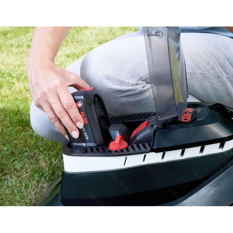 Der 18-V-Lithium-Ionen-Akku sorgt für leistungsstarkes Arbeiten auf Rasenflächen bis zu 300 m². Die Schnitthöhe lässt sich über die zentrale 6-Stufen-Einstellung im Bereich von 20 mm bis 75 mm mit einem Handgriff einfach verstellen. Der Grasfangkorb mit Füllstandsanzeige fasst bis zu 45 l Schnittgut. Ein praktischer Tragegriff sorgt für einfachen Transport, und der komfortable Griffschalter bietet mehr Fahrkomfort. Mit der AL-KO 18-V-Akku-Familie „Bosch Home & Garden Compatible“ sind Sie dank unserer zahlreichen Gartengeräte für jeden Einsatz bestens gerüstet. Darüber hinaus sind die Akkus und Ladegeräte mit allen Geräten verschiedener Hersteller kompatibel, die mit dem Bosch 18-V-Home-and-Garden-Akkusystem zusammenarbeiten.