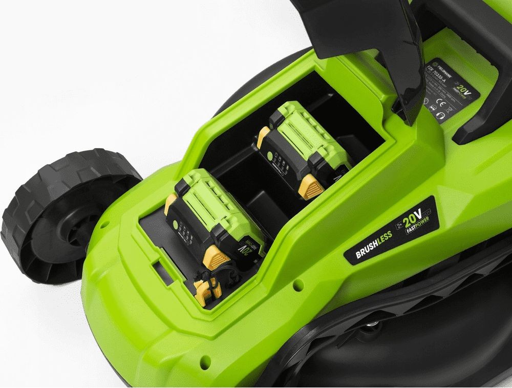 - Eine Arbeitsbreite von 33 cm in Kombination mit 2 × 20-V-Akkus sorgt für ausreichende Leistung