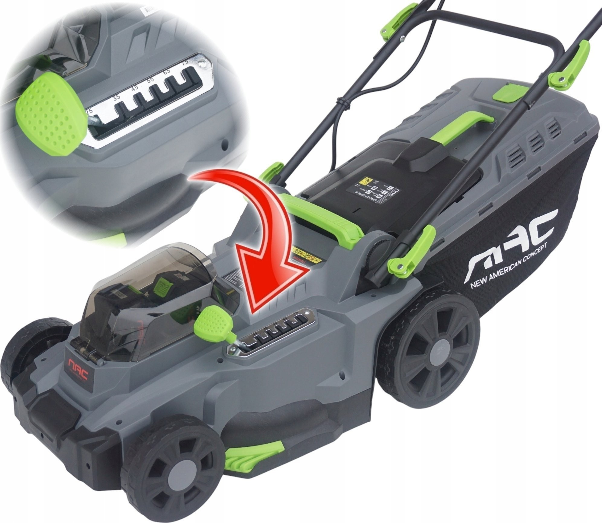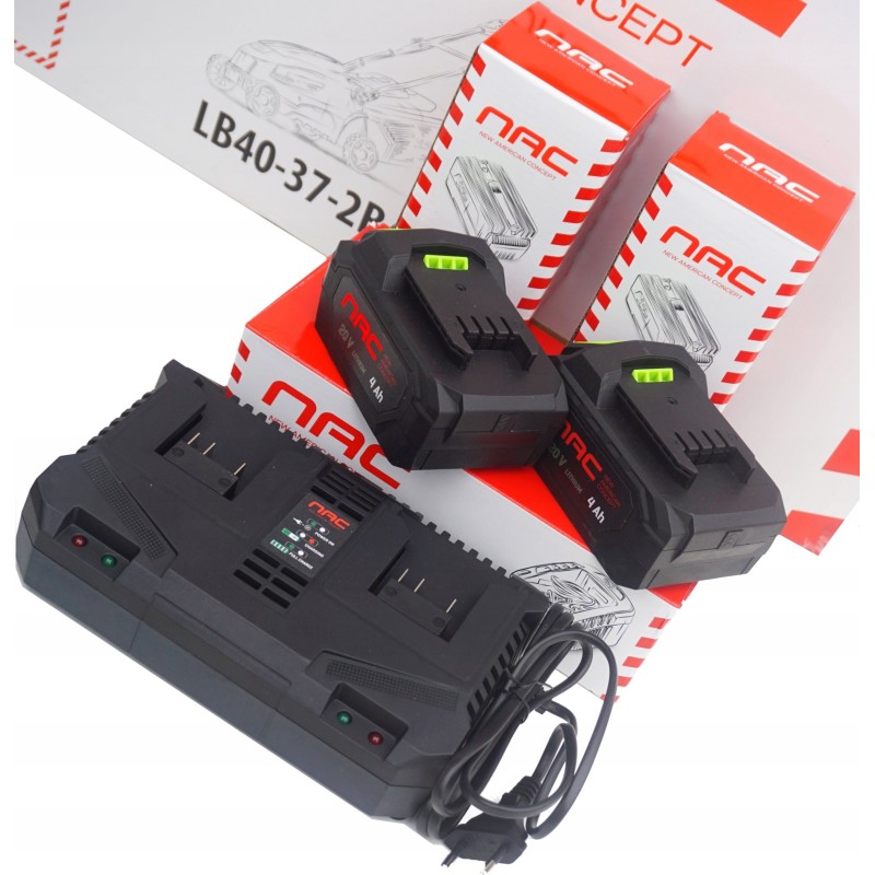 NAC. Akku-Rasenmäher, Schnittbreite 37 cm, 2x20 V, 2x4 Ah