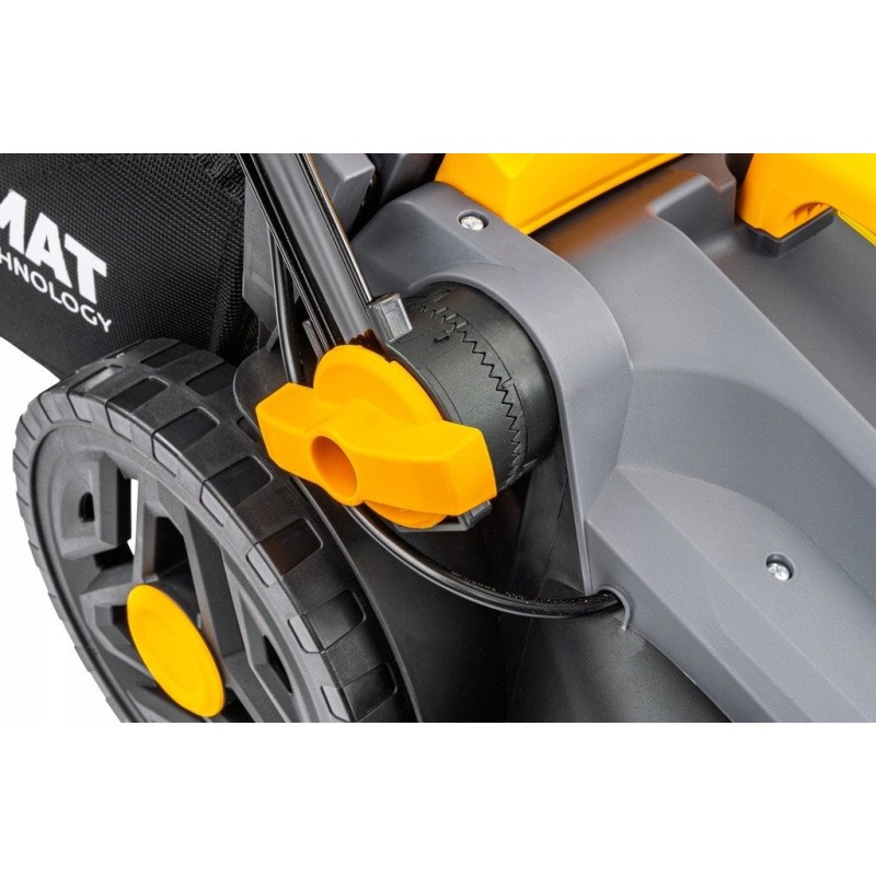 Der Rasenmäher zeichnet sich durch eine robuste Konstruktion mit verstärktem Fahrwerk aus, was ihm eine lange Lebensdauer verleiht. Darüber hinaus erhöht das Fehlen von Stromkabeln die Mobilität und den Bedienkomfort.