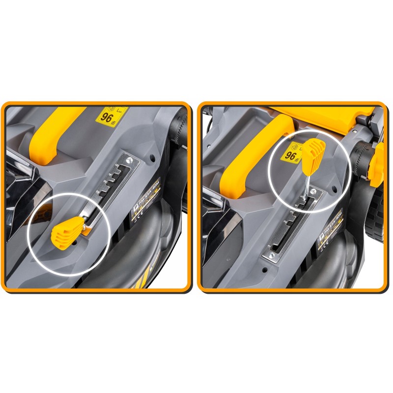 Mit einem Geräuschpegel von 96 dB ist der Rasenmäher im Vergleich zu herkömmlichen Benzinmodellen relativ leise, was ihn zur idealen Wahl für den Einsatz in Wohngebieten macht.