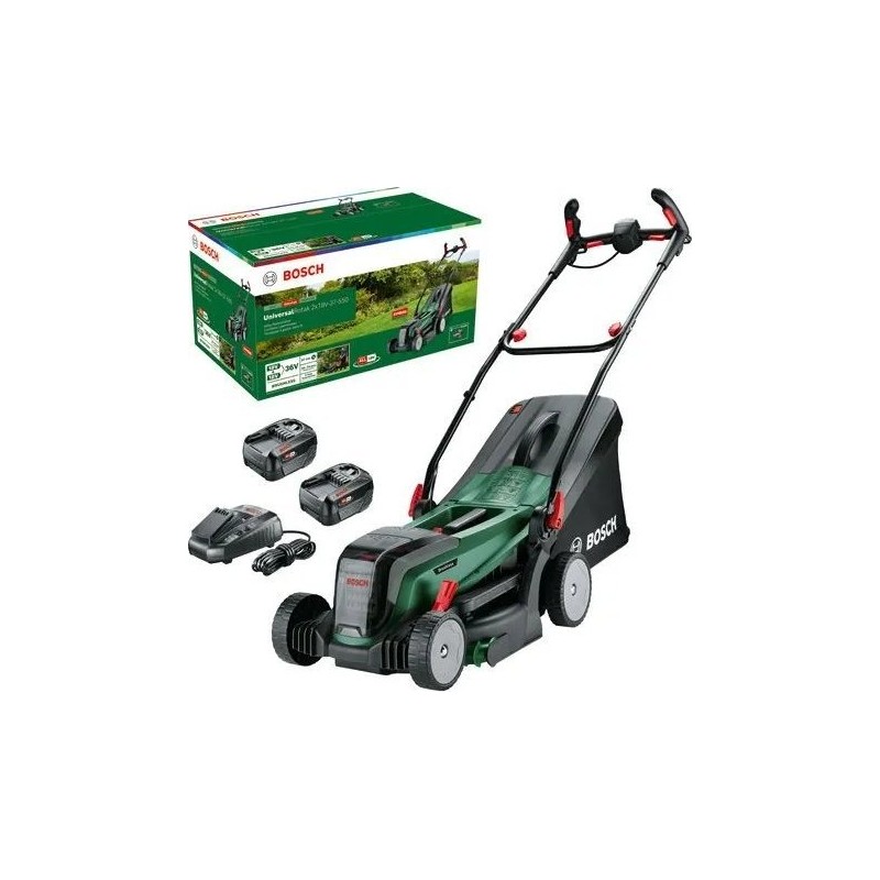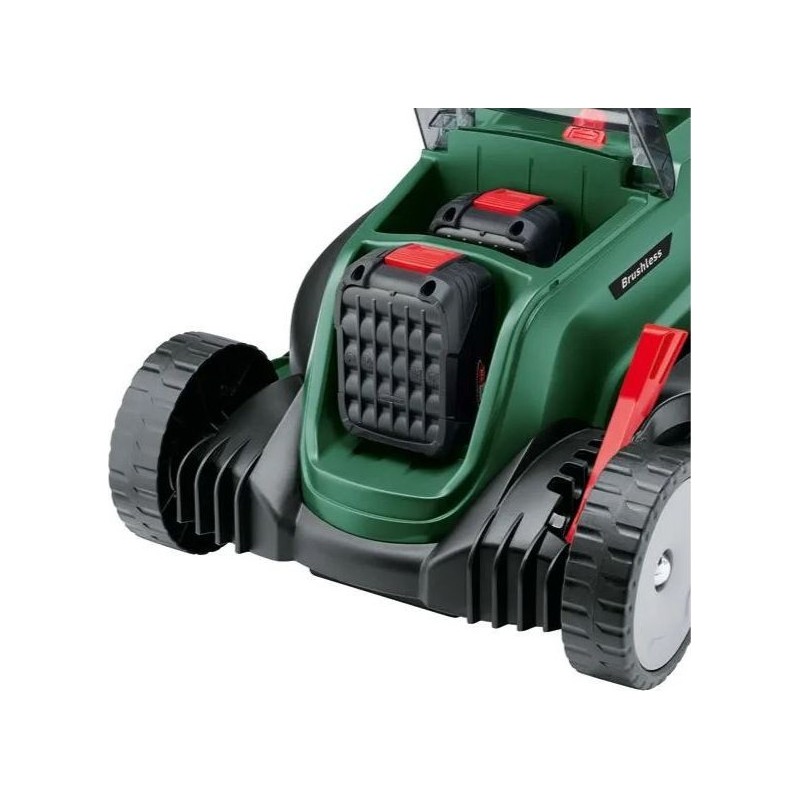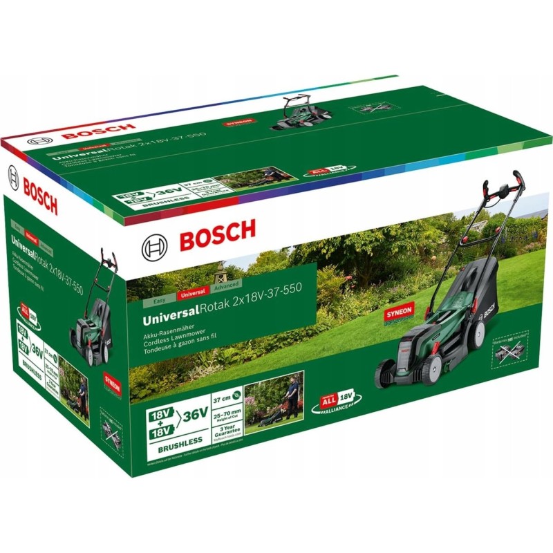 Der Akku-Rasenmäher Bosch UniversalRotak 2x18V-37-550 ist die ideale Lösung für die Pflege mittlerer und größerer Rasenflächen. Dank der Verwendung von zwei 18-V-Akkus (Power for ALL-System) verfügt das Gerät über eine Gesamtspannung von 36 V, was sich in einer hohen Leistung und einer Mähleistung niederschlägt, die mit der von Netzrasenmähern vergleichbar ist. Der bürstenlose Motor garantiert eine längere Lebensdauer des Geräts sowie eine optimale Nutzung der Akkuenergie. Die Schnittbreite von 37 cm ermöglicht es, Rasenflächen von bis zu 550 m² mit einer einzigen Akkuladung schnell zu bewältigen (abhängig von der Akkukapazität und den Bedingungen).