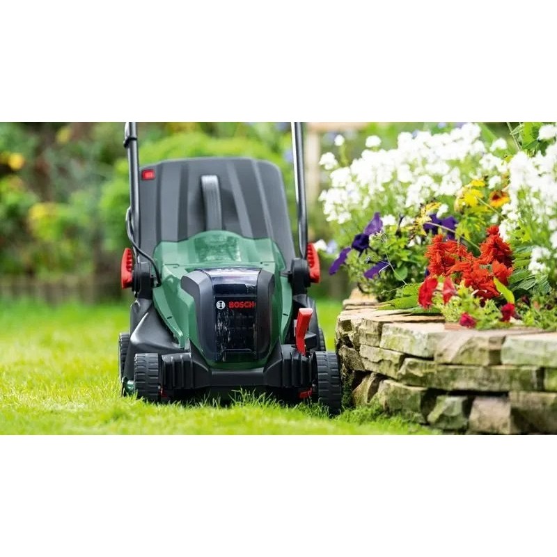 Das Gerät gehört zum Bosch 18V Power for ALL-Akkusystem, was bedeutet, dass dieselben Akkus in einer Vielzahl von Elektrowerkzeugen und Gartengeräten der Marke Bosch verwendet werden können. Dies ist eine praktische und wirtschaftliche Lösung, die es ermöglicht, die eigene Ausrüstung zu erweitern, ohne weitere Akkus und Ladegeräte kaufen zu müssen. Die robuste Konstruktion des Rasenmähers aus hochwertigen Kunststoffen sorgt für Langlebigkeit und Widerstandsfähigkeit und garantiert Zuverlässigkeit über viele Saisons hinweg.