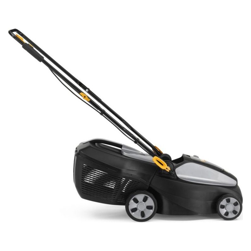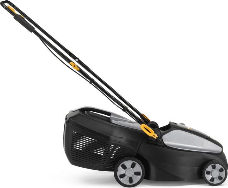 Der Rasenmäher ist mit einem vorderen Griff ausgestattet, der eine komfortable Führung des Geräts ermöglicht. Ein häufiges Problem bei solchen Geräten sind zu tief oder zu hoch angebrachte Griffe, die nach längerer Mähzeit zu erheblichen Beschwerden führen. Das Modell verfügt über einen klappbaren Lenker, der ein schnelles Zusammenklappen und die Lagerung des Geräts in einem kleineren Raum ermöglicht.