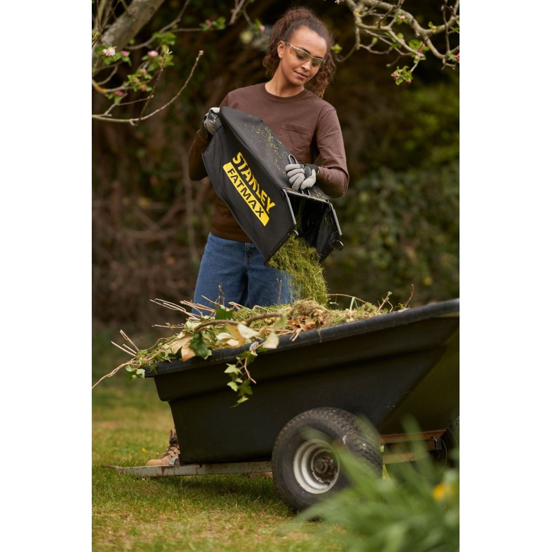 - Großer, 40-Liter-Grasfangkorb aus strapazierfähigem Gewebe, wodurch das Entleeren weniger Zeit in Anspruch nimmt