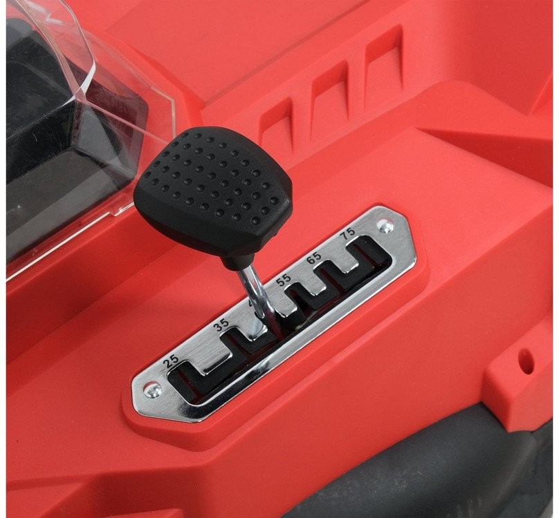 - Zentrale Schnitthöhenverstellung in 6 Stufen von 25 bis 75 mm