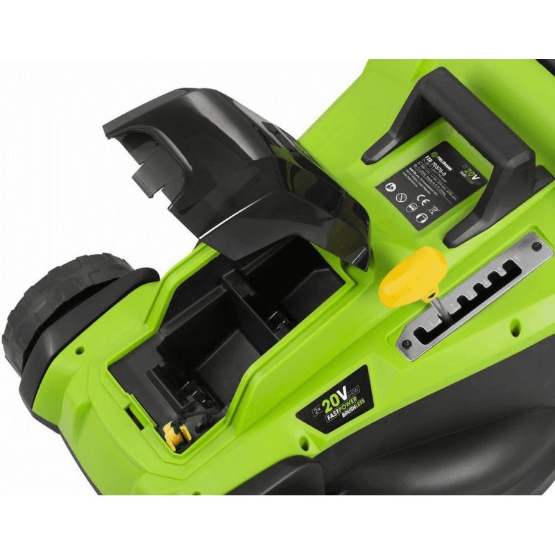 Der FIELDMANN Akku-Rasenmäher bewältigt jeden Garten mit einer Fläche von bis zu 500 m². Er ist mit einem modernen, langlebigen und wartungsfreien Bürstenlosmotor ausgestattet. Ein Sicherheitsschalter verhindert ein versehentliches Einschalten des Messers, und die robuste Konstruktion aus strapazierfähigem Kunststoff garantiert eine lange Lebensdauer. Um eine hervorragende Handhabung der Maschine zu gewährleisten, ist der Rasenmäher mit robusten Rädern aus strapazierfähigem Kunststoff ausgestattet. Der Rasenmäher erreicht eine hohe Leistung durch die volle Ausnutzung der Leistung von 2 20-V-Akkus in Kombination mit einer elektronischen Steuereinheit. Es können Akkus mit einer Kapazität von 2 Ah / 4 Ah verwendet werden, die mit allen Produkten der FIELDMANN-Serie FAST POWER 20V kompatibel sind.