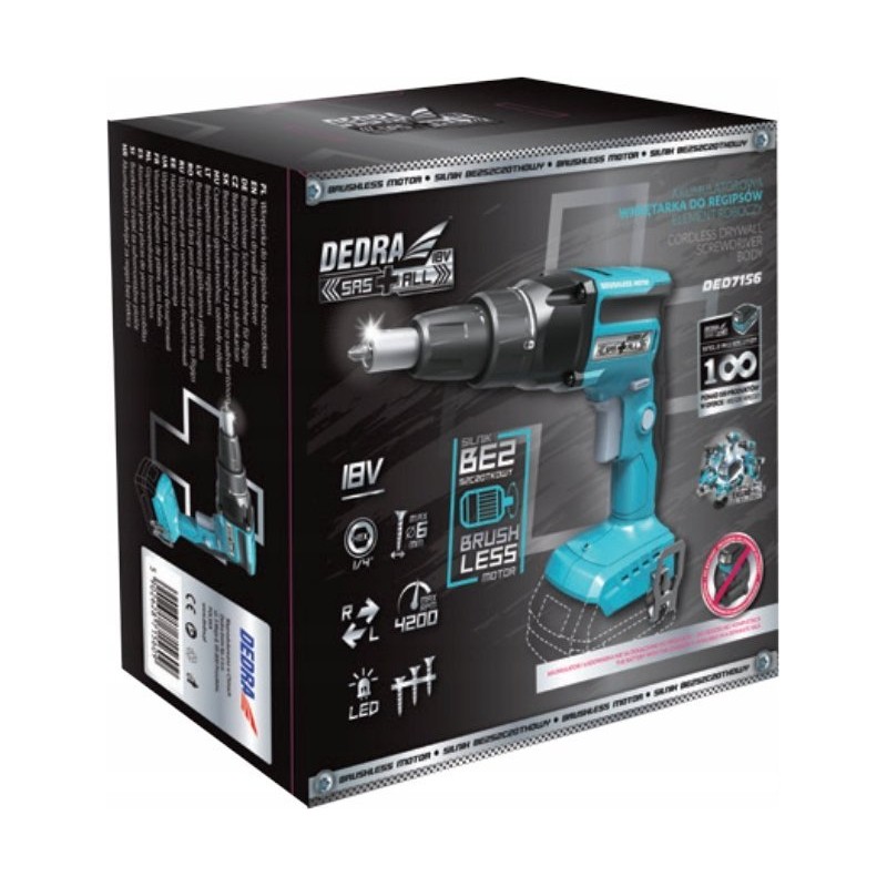 Dedra Akku-Schrauber für Gipskartonplatten 1/4" Sechskant 18 V 0*Ah SAS+ALL
