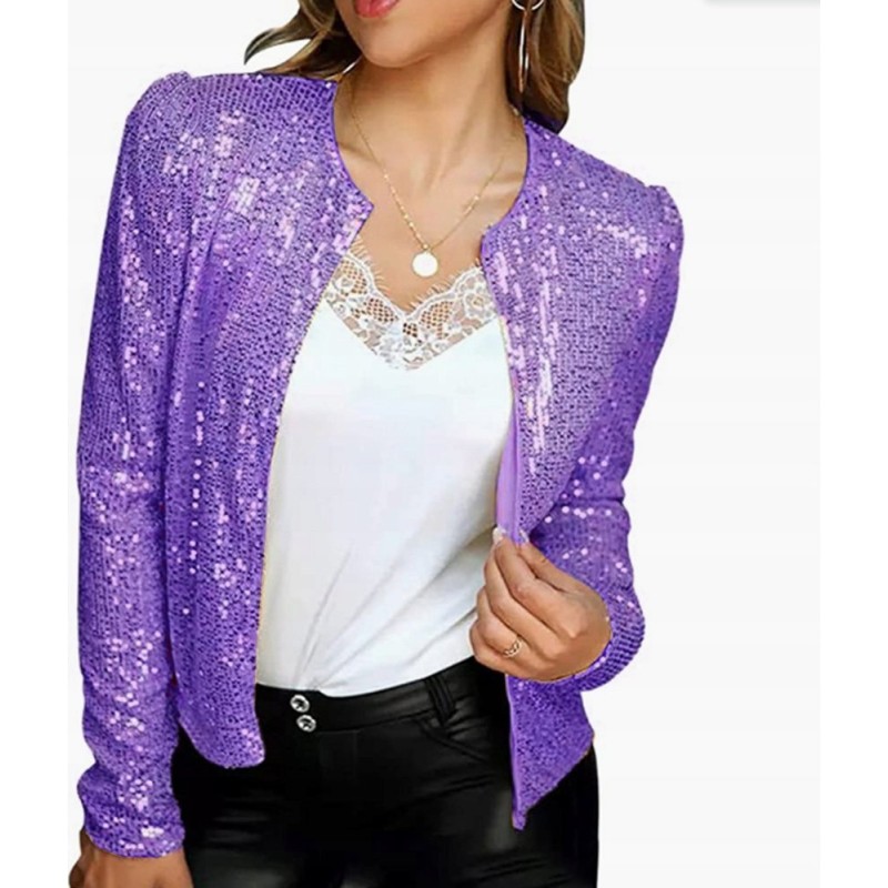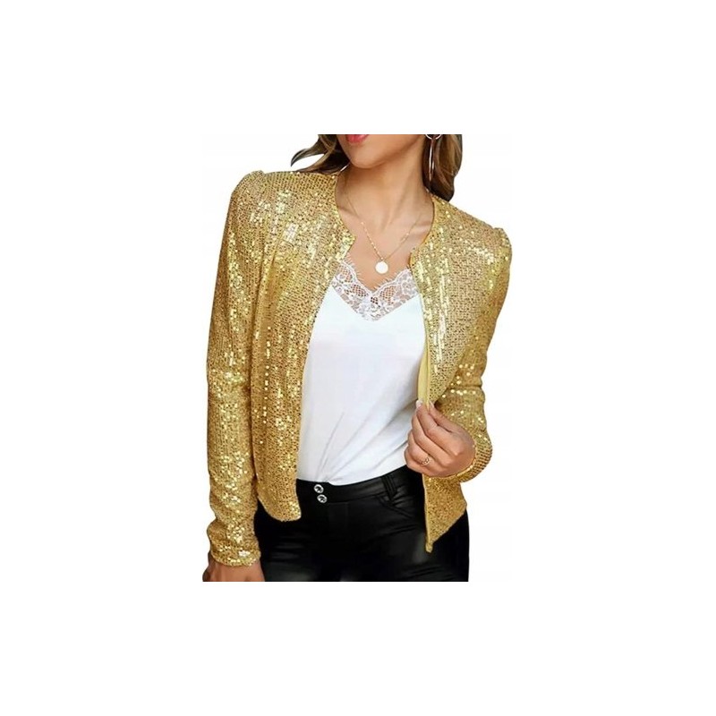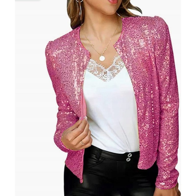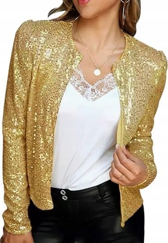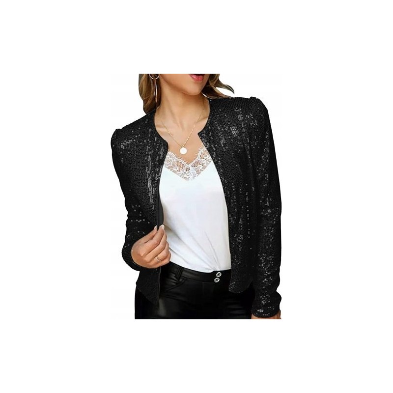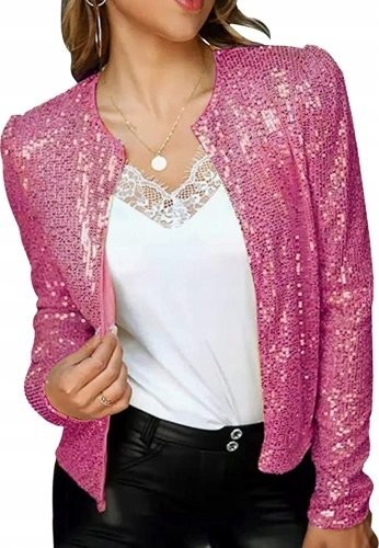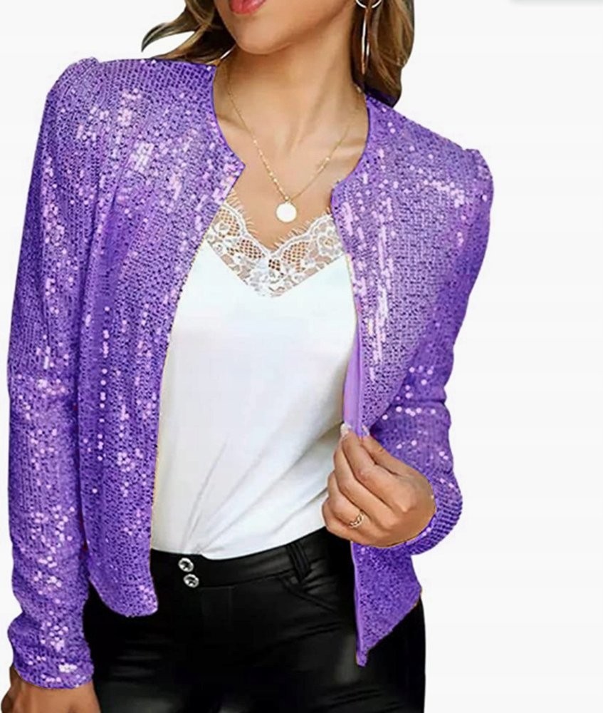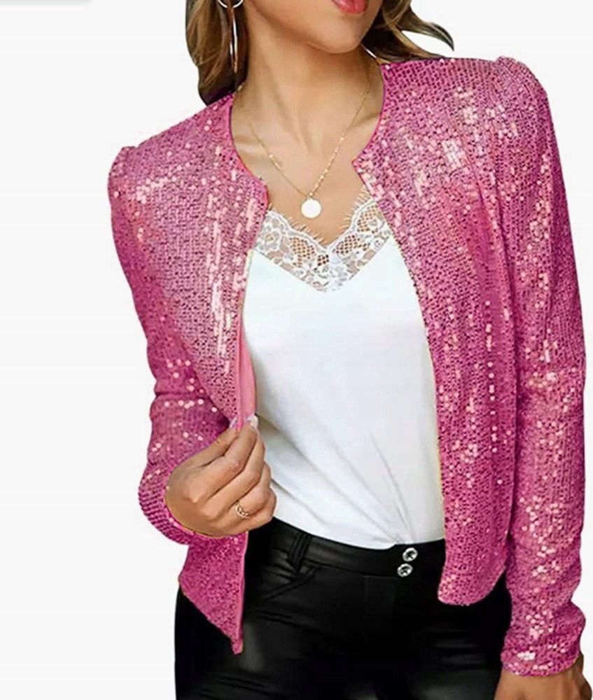 Outfit aus einer Paillettenjacke ohne Verschluss – Paillettenjacke