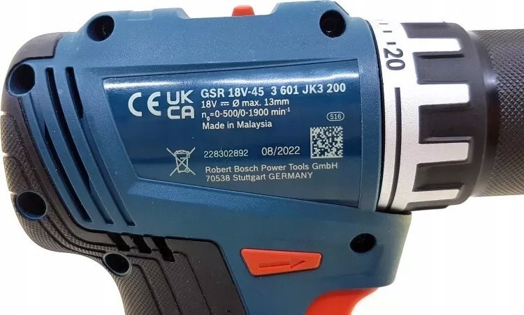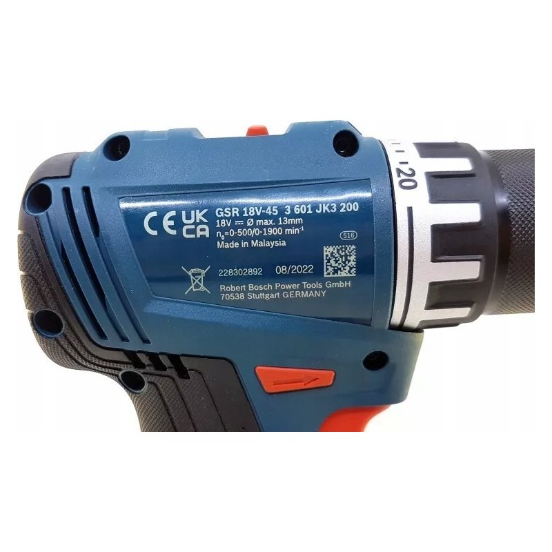 - Artikelname: Bosch Professional Akku-Bohrschrauber 18 V GSR 18 V-45 (Drehzahl 1900 U/min, 2 x 3,0-Ah-Akkus, Ladegerät GAL 18 V-40, in L-BOXX), 06019K3204, blau