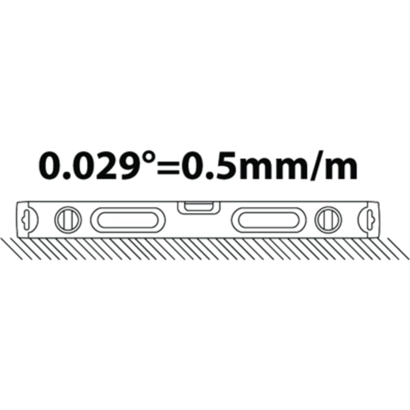 - 0,5 mm/m Genauigkeit in Normalstellung. 0,75 mm/m in umgekehrter Position