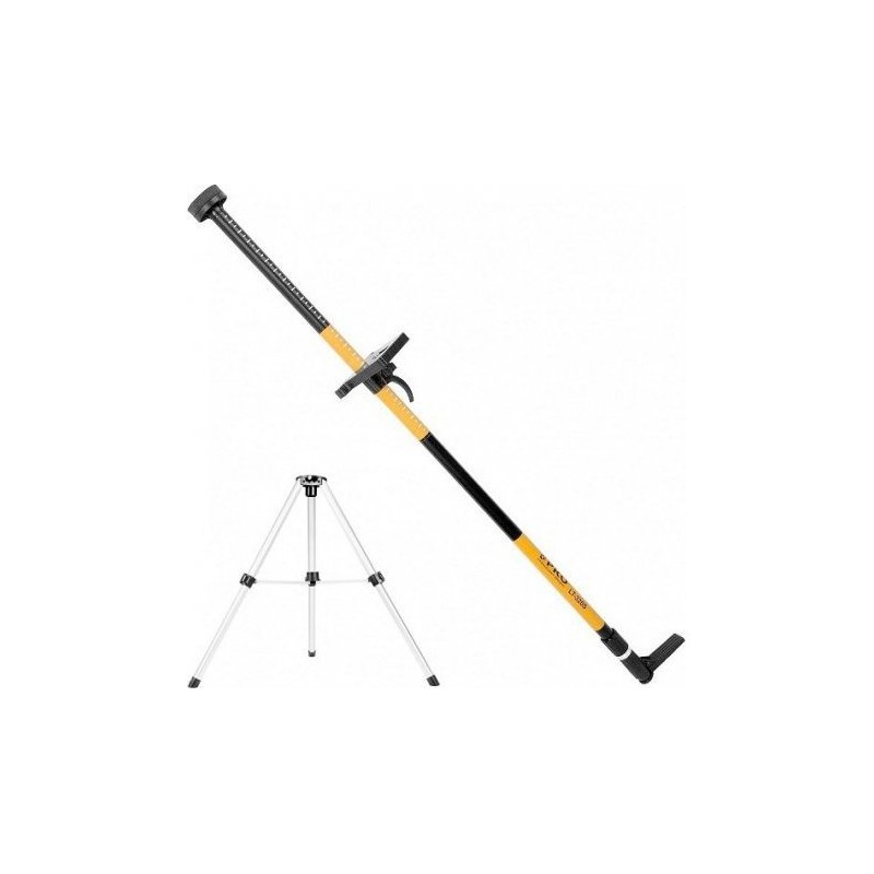Technische DatenHersteller: ProHerstellercode: 3-01-06-38-014 Höhe: bis zu 320 cmAnzahl der abnehmbaren Abschnitte: 4 ElementeGewinde des Halterungsstücks: 1/4", 5/8"Spannstange LT-334S-2GT mit StativSpannstange LT-334S-2GT der Marke PRO, seit über 20 Jahren einer der Marktführer in der Baubranche. Dieses Werkzeug ist hilfreich beim Ausrichten der Laserlinie auf die gewünschte Höhe und ermöglicht eine bequeme Messung mit einem Kreuzlaser in Räumen mit einer Höhe von bis zu 3,2 m, ohne dass zusätzliche Stative oder ähnliche Vorrichtungen erforderlich sind.Der Laser kann dank der verstellbaren Halterung mit einer zentralen 5/8-Zoll-Schraube auf jede beliebige Höhe eingestellt werden. Ausgestattet mit einer metrischen Skala, die das Positionieren des Lasers auf der gewünschten Höhe erleichtert.Ein sehr komfortables und praktisches Gerät, das sowohl einen problemlosen Transport als auch eine perfekte Anpassung der Stangenlänge an die Raumhöhe ermöglicht, dank der einzelnen, abschraubbaren Teile des Werkzeugs. 2 abschraubbare Füße – bewegliche rechteckige und runde Schaumstoff-Deckenauflage. Das untere Element der Stange ist teleskopisch aufgebaut, was das Festklemmen erleichtert. **Abbildungen dienen nur zur Veranschaulichung...
