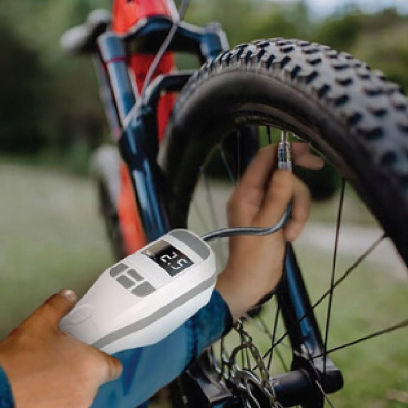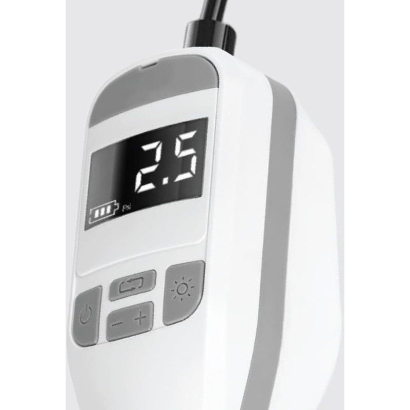 Das Gerät erfüllt drei Funktionen: kabellose Autokompressor, Powerbank und LED-Taschenlampe. Der eingebaute Akku ermöglicht den Einsatz des Kompressors unabhängig von Stromquellen. Der Kompressor verfügt über 3 Pumpmodi: