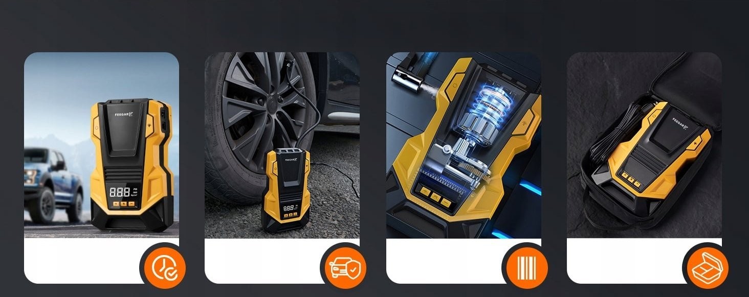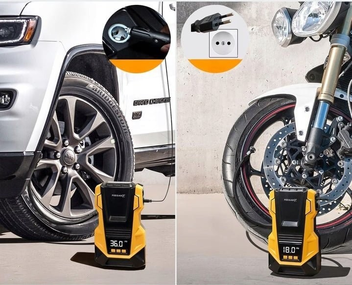 Feegar 12V/230V Autokompressor – tragbarer Kompressor für Reifen mit LED-Beleuchtung