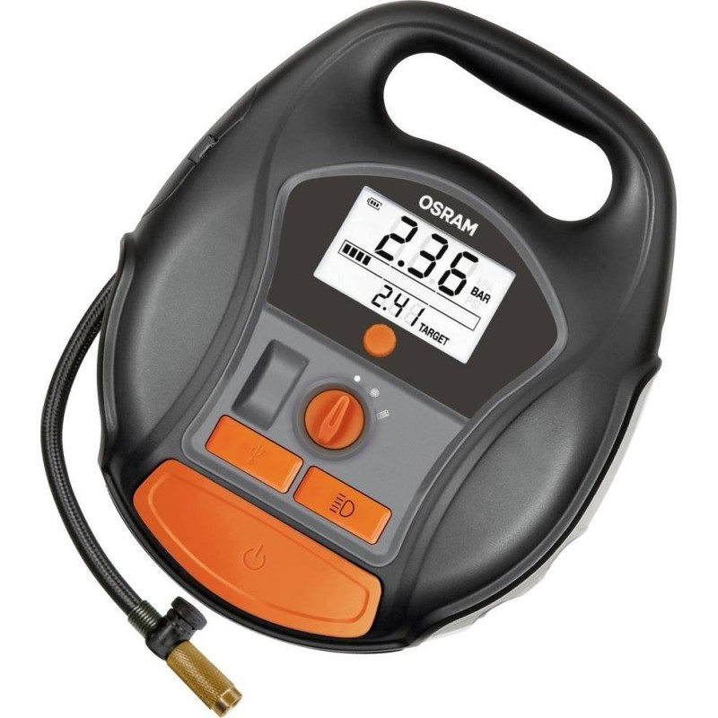 Die OSRAM TYREinflate 6000 ist eine kabellose und wiederaufladbare Reifenpumpe mit Lithium-Ionen-Akku und damit der ideale Begleiter für Campingausflüge und Autoreisen. Die digitale Reifenpumpe OTIR 6000 kann einen Reifen in nur zwei Minuten aufpumpen und verfügt über spezielle Einstellungen für andere aufblasbare Gegenstände wie Luftmatratzen, aufblasbare Betten, Bälle und mehr. Die automatische Abschaltfunktion und das Ablassventil helfen dabei, den optimalen Druck in Reifen und anderen aufblasbaren Gegenständen aufrechtzuerhalten.