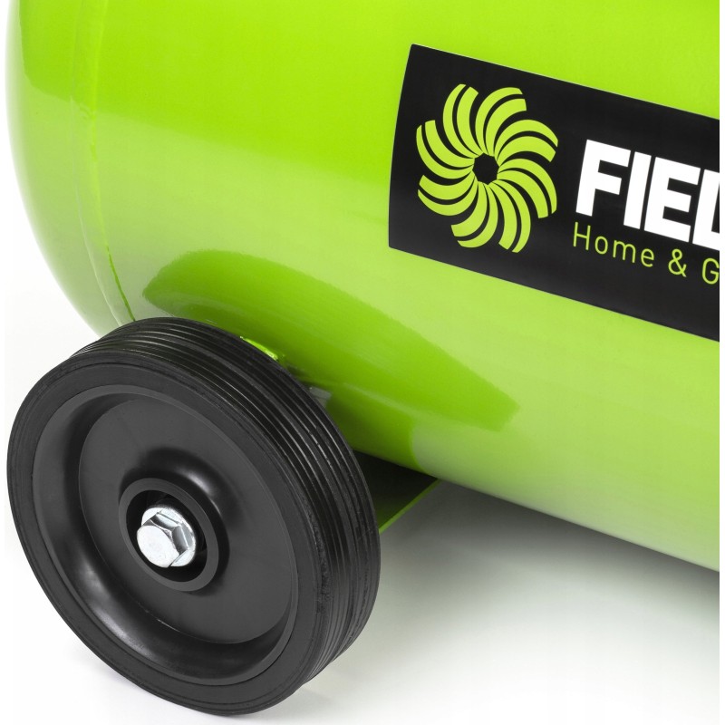 Die bequeme Nutzung von Werkzeugen und Geräten ist von größter Bedeutung, daher wurde der Kompressor Fieldmann FDAK 201552-E mit einem Tragegriff und großen Rollen ausgestattet. Dies ermöglicht ein einfaches und komfortables Umstellen des Geräts. Hinzu kommen Gummifüße, dank derer der Kompressor während des Betriebs nicht verrutscht, stabil steht und gleichzeitig den Boden nicht beschädigt.