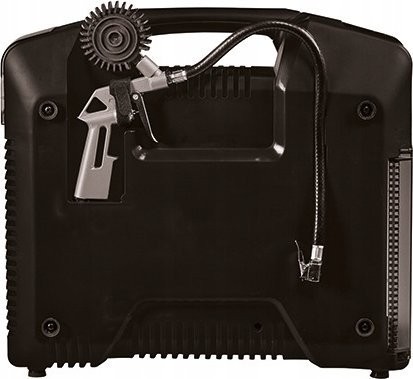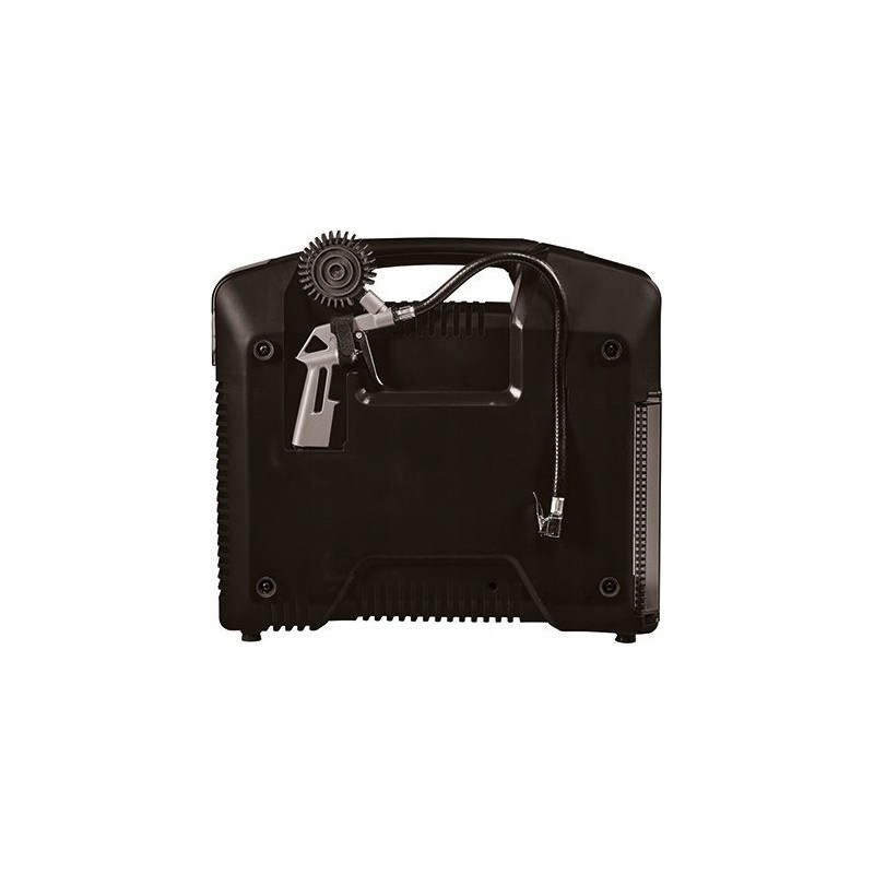 Die ölfreie, wartungsfreie Pumpe erfordert nur wenig Pflege. Ein Staufach für den Druckluftschlauch ist in das Gehäuse integriert. Das Reifendruckmessgerät lässt sich bequem am Gehäuse verstauen. Batterien und Ladegerät sind nicht im Lieferumfang enthalten, sondern separat erhältlich.