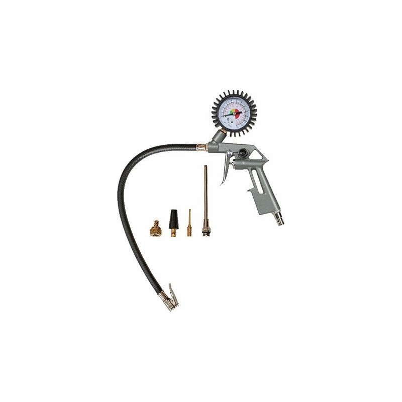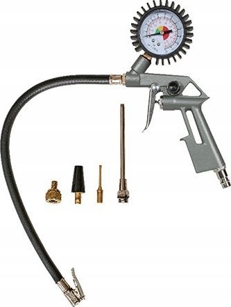 - Enthält einen Ausblasadapter, eine Reifendruckanzeige und ein 3-teiliges Adapterset