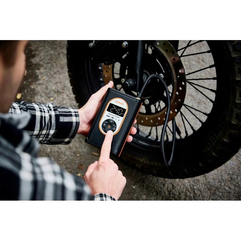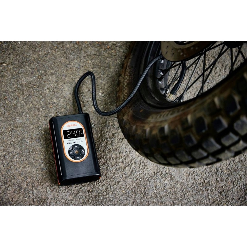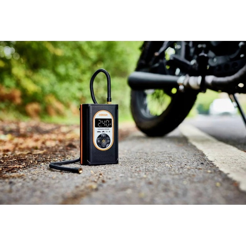 Der Kompressor Osram TYREinflate 4000 wird mit einem modernen Lithium-Ionen-Akku betrieben, was für lang anhaltende Leistung und Bedienkomfort sorgt. Dadurch ist das Gerät nicht nur mobil, sondern auch einfach zu bedienen, da kein Anschluss an eine Steckdose erforderlich ist.