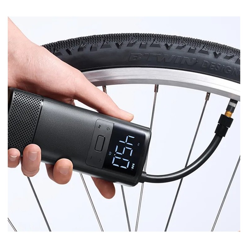 Sein schlankes Gehäuse sorgt für einen bequemen Griff, wodurch der Kompressor leicht zu transportieren und bequem mit einer Hand zu bedienen ist. Dank der kabellosen Bauweise erreichst du jedes Objekt, das aufgepumpt werden muss, ohne großen Aufwand und ohne Kabel anschließen zu müssen.