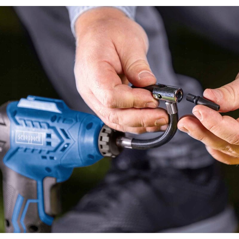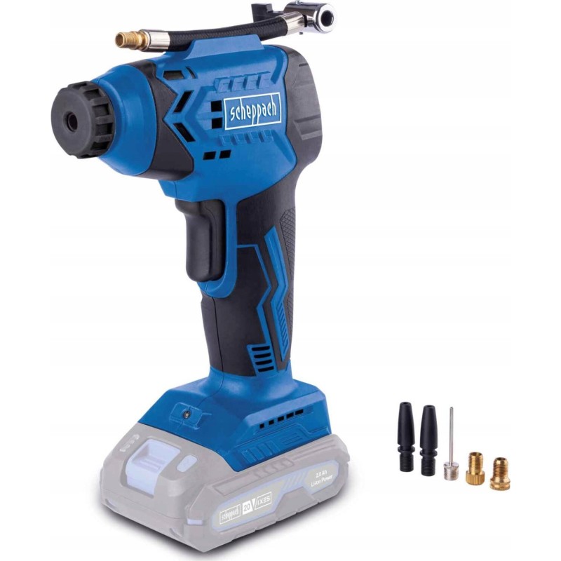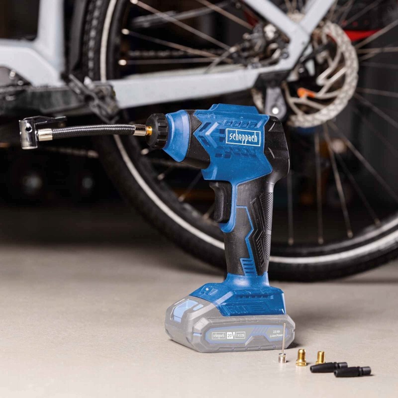 ⏩Akku-Handkompressor der Scheppach IXES 20 V-Serie – alle Akkus und Ladegeräte derselben Serie sind mit diesem Kompressor kompatibel