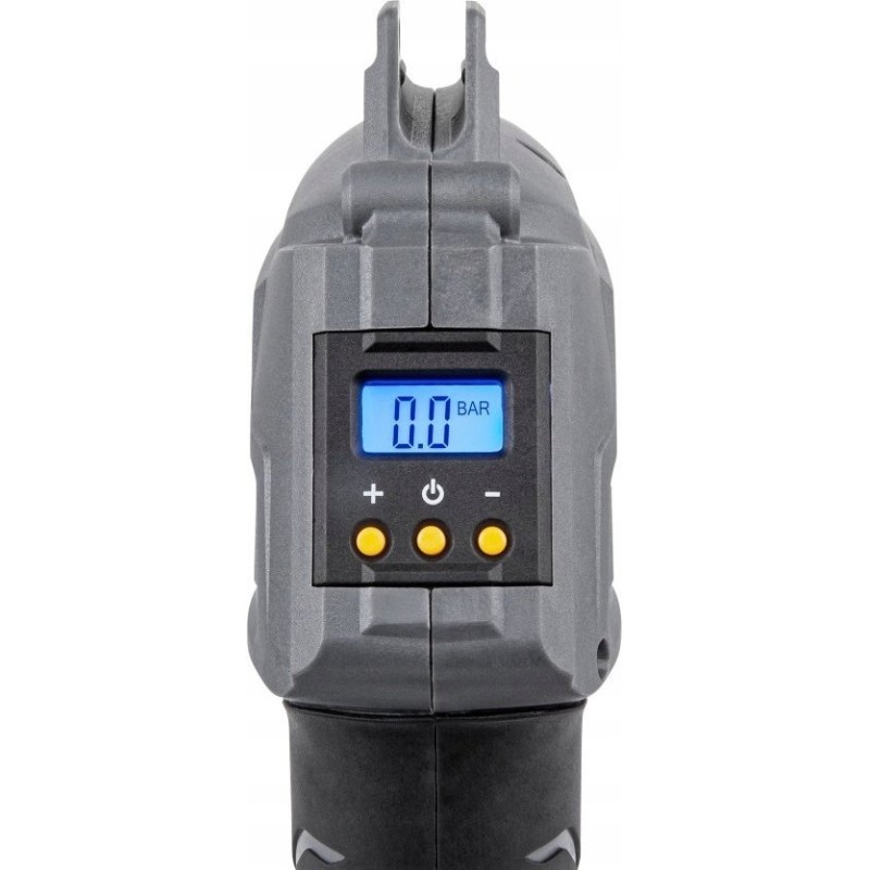 Es gibt zwei Möglichkeiten zum Aufpumpen: manuell, indem Sie den Schalter gedrückt halten, bis der gewünschte Druck erreicht ist, oder automatisch, indem Sie den entsprechenden Druck mit den Tasten +/- einstellen – der Kompressor stoppt das Aufpumpen automatisch, sobald der festgelegte Grenzwert erreicht ist. Ein Vorteil des Geräts ist das beleuchtete LCD-Display mit digitaler Anzeige, das den Druckanstieg im aufblasbaren Gegenstand laufend anzeigt.