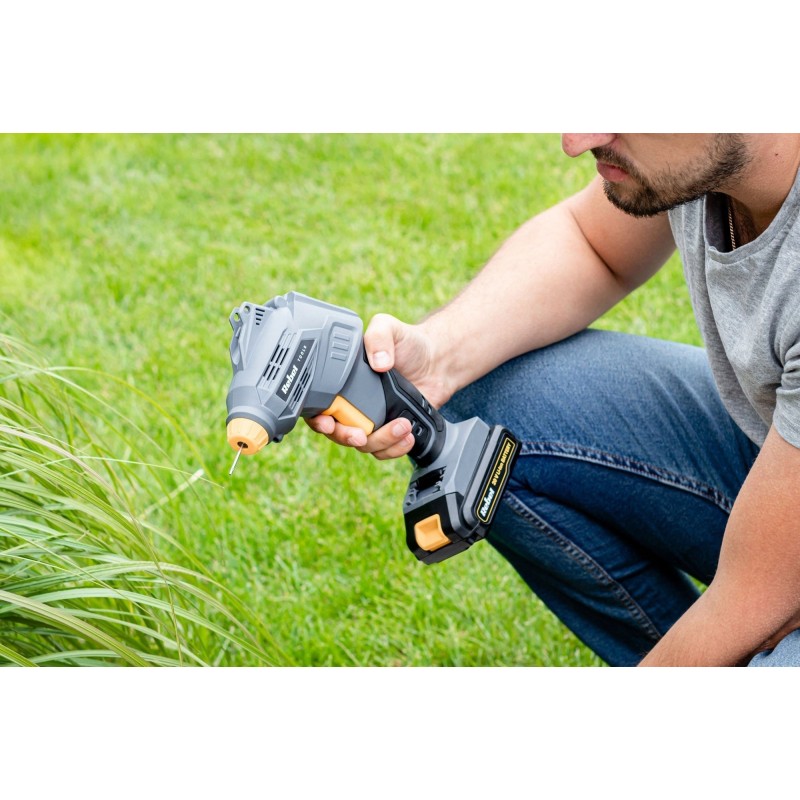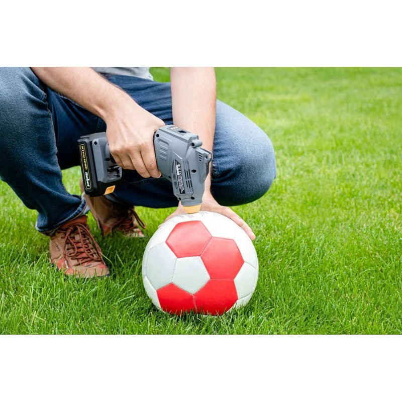 Vergessen Sie die Handpumpe und ersetzen Sie sie durch einen Akku-Kompressor aus der Rebel Tools-Serie. Dank des mitgelieferten Zubehörs können Sie mit diesem Gerät schnell und einfach Fahrrad- und Autoreifen sowie Spielzeug und andere aufblasbare Gegenstände wie Luftmatratzen, Bälle und Kinderplanschbecken aufpumpen.