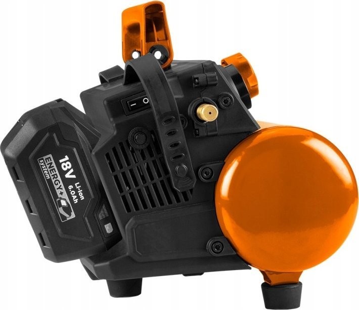 Der Akku-Druckluftkompressor Energy+ 18 V 04-620 der Marke NEO ist ein ölfreies Gerät, das mit dem Energy+-Akkusystem betrieben wird.