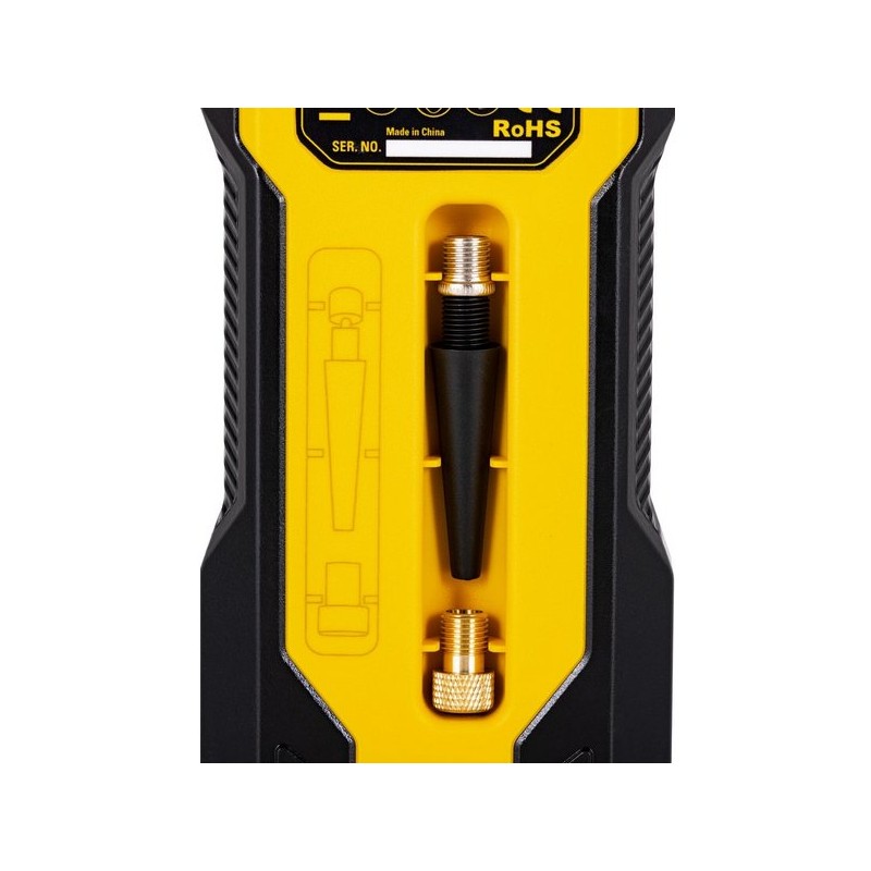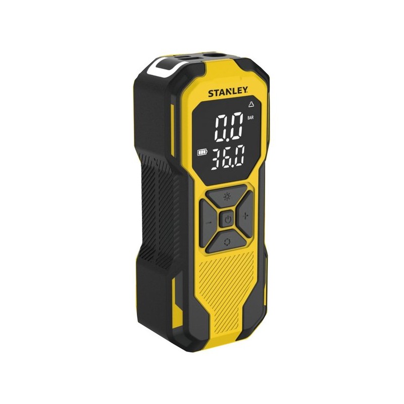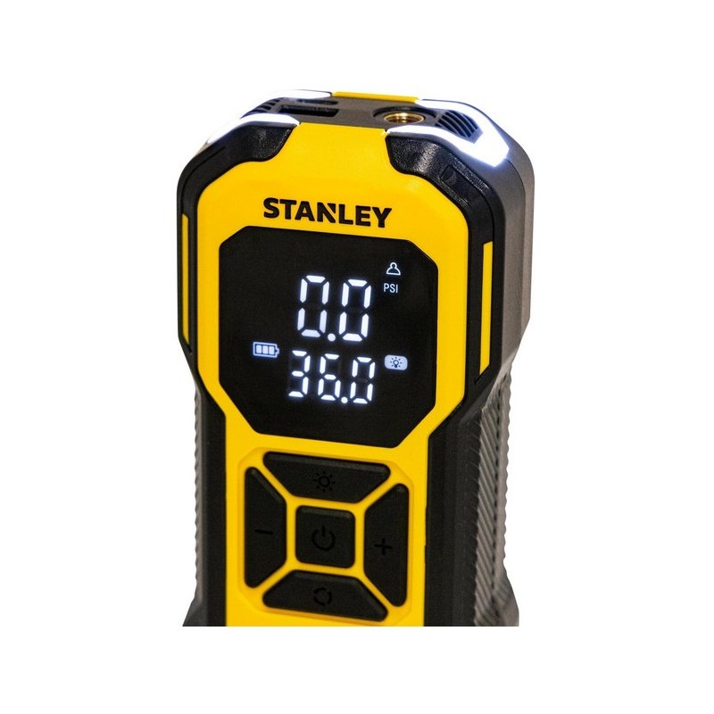 Der Akku-Kompressor STANLEY SXIF0101 ist ein tragbares Gerät mit einem Li-Ionen-Akku, der auch als Powerbank dienen kann. Er funktioniert sowohl kabelgebunden als auch kabellos. Er verfügt über ein Display, das den aktuellen Druck und andere Parameter anzeigt, sowie über USB-Anschlüsse, ein Fach für Zubehör und eine integrierte LED-Leuchte. Der maximale Druck beträgt 10 bar. Die Stromversorgung erfolgt über den 12-V-Zigarettenanzünder und den USB-C-Anschluss (Kabel im Lieferumfang enthalten). Die Bedienung ist dank der gut angeordneten Tasten einfach, und die Abschaltautomatik ermöglicht es, den gewünschten Druck in PSI einzustellen und den Betrieb fortzusetzen, während die digitale Anzeige das Ablesen der Parameter erleichtert.