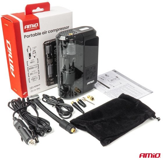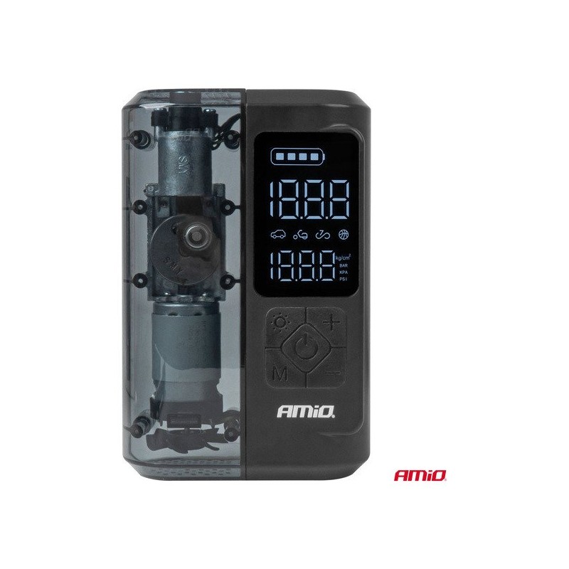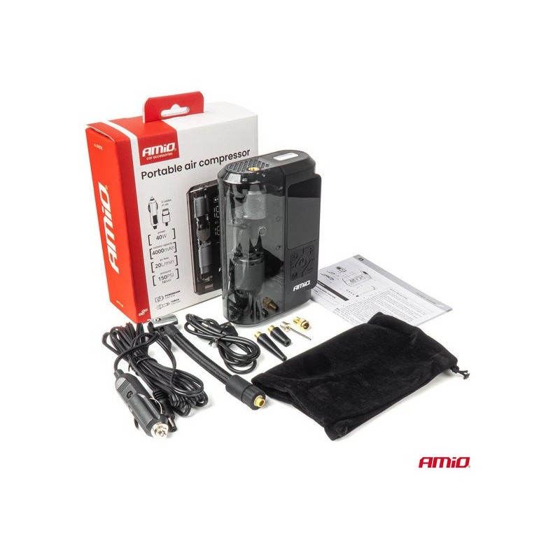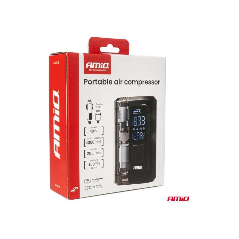 Kabelloses, akkubetriebenes Auto-Luftkompressor mit Powerbank, LED und USB-C, 40 W, AMIO-04378 – Ein unverzichtbares Gerät für jede Reise