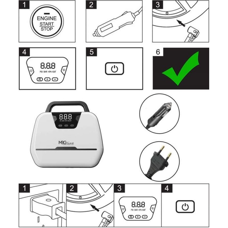 Mbg Line Autokompressor, 12 V / 230 V, LED-Pumpe mit LCD-Display