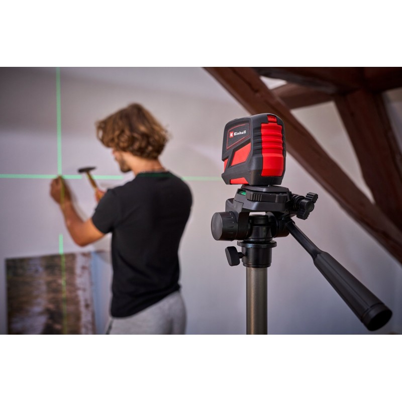 ist ein ideales Werkzeug mit einer Reichweite von bis zu 16 Metern, das für Installations-, Reparatur- und Renovierungsarbeiten konzipiert ist. Es erzeugt grüne Laserlinien unter Verwendung von Dioden mit einer Wellenlänge von 510 bis 530 nm, was der Laserklasse II entspricht. Es gewährleistet eine hohe Präzision von 0,5 mm/m. Der TC-LL 2 G projiziert sowohl horizontale als auch vertikale Laserlinien, die mit einem einzigen Knopf individuell umgeschaltet werden können, wobei zwischen horizontaler, vertikaler oder Kreuzlinie gewählt werden kann. Der Selbstnivelliermechanismus warnt mittels einer LED, wenn die Neigung 4° überschreitet, und die Einstellzeit beträgt weniger als 5 Sekunden.