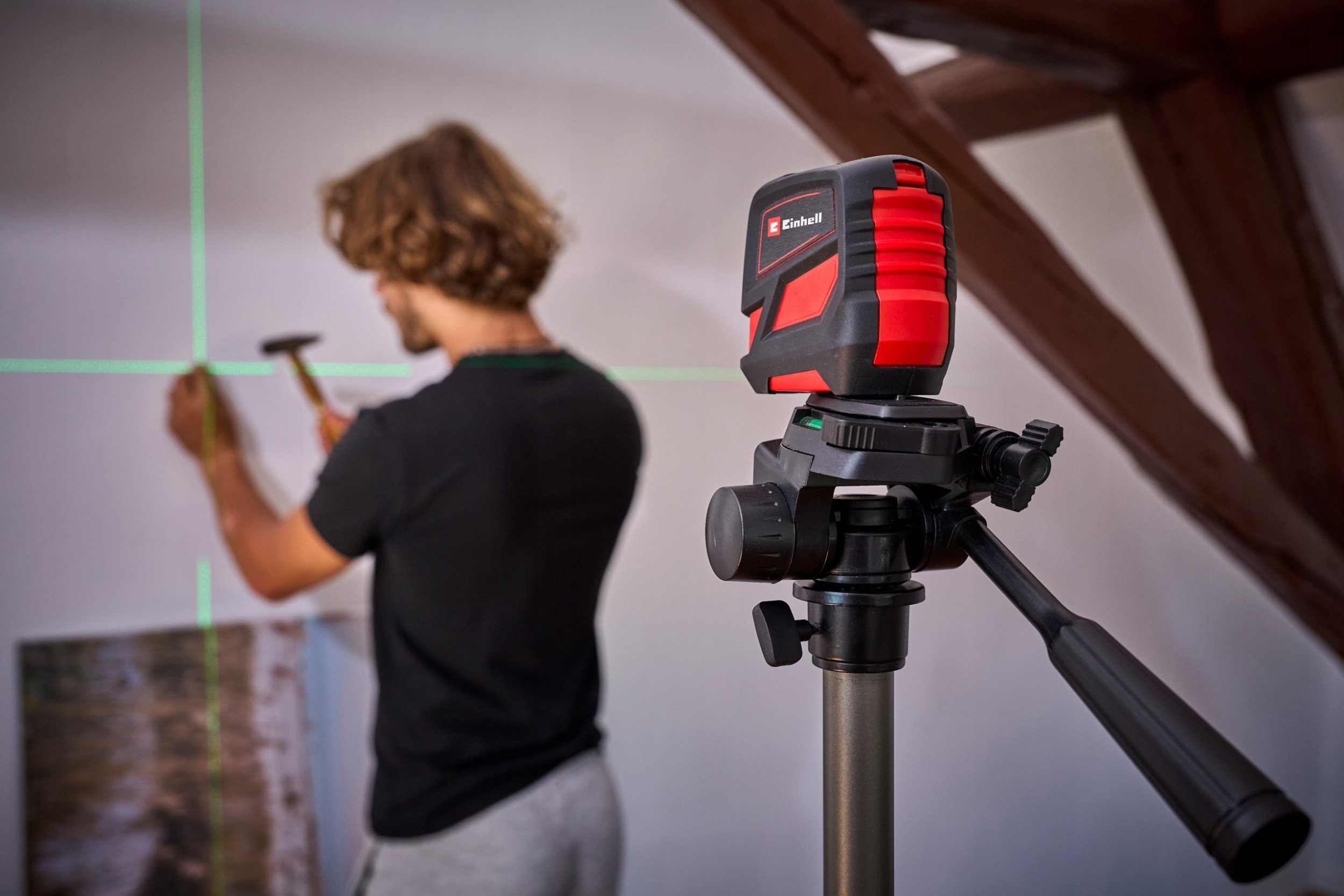 Der kompakte Kreuzlaser TC-LL 2 G ermöglicht die Projektion von vertikalen, horizontalen und Kreuzlinien und erleichtert so unter anderem die Ausrichtung von Fliesen, Bildern, Fenstern oder Türen.