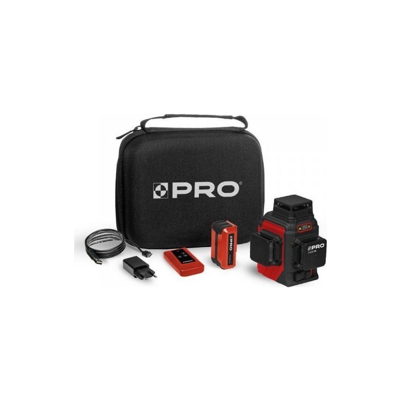 Der Mehrlinienlaser PRO-AQ3DR erzeugt drei 360°-Ebenen: eine horizontale und zwei vertikale Ebenen, die sich im 90°-Winkel schneiden. Der Pulsmodus für die Arbeit mit einem Detektor erhöht die Reichweite des Lasers. Die Laserlotfunktion (die Kreuzachse an der Decke und am Boden markiert die Lotlinie) Möglichkeit zur Markierung von Schrägen dank des Betriebsmodus mit arretiertem Pendel selbstnivellierend dank des Magnetpendels Schutzklasse IP54 Neigung des Geräts außerhalb des Arbeitsbereichs von 3°±1° wird durch einen pulsierenden Signalton und das Blinken der Laserlinie signalisiert einfache Montage auf einem Stativ oder einer Auslegerstange mit 1/4"- und 5/8"-Gewinde Artikelnummer PRO-L1205 Gewinde 1/4" und 5/8" Schutzart IP54 Stromversorgung Li-Ionen-Akku Farbe des Laserstrahls Rot Genauigkeit ± 1 mm/5 m (± 0,2 mm/1 m) Reichweite (max.) 20 m Reichweite mit Detektor (max.) 50 m Selbstnivellierungssystem Magnetpendel Manueller Modus Ja ...