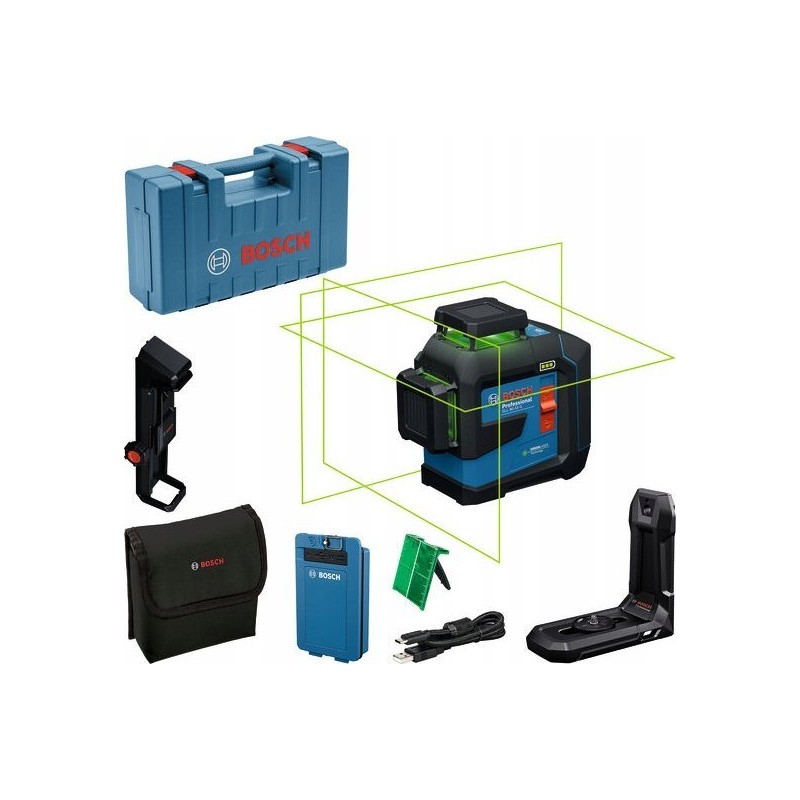 BOSCH.PLANE LASER GLL 80-33 G GREEN USB-C 1x BA 3,7 V 3,0 Ah XL + GRIFF LB 10 + KLEMME DK 20 KOFFER