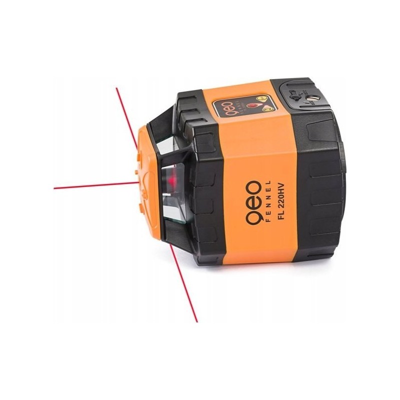 - Er arbeitet horizontal und vertikal vollautomatisch. Er sendet zwei Laserstrahlen aus, die horizontale und vertikale Linien und Ebenen sowie rechte Winkel markieren.